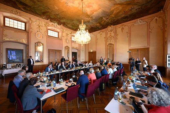 Das Landeskabinett hat sich am 25. Juni 2024 zu einer auswärtigen Kabinettssitzung im Neuen Schloss in Meersburg getroffen.