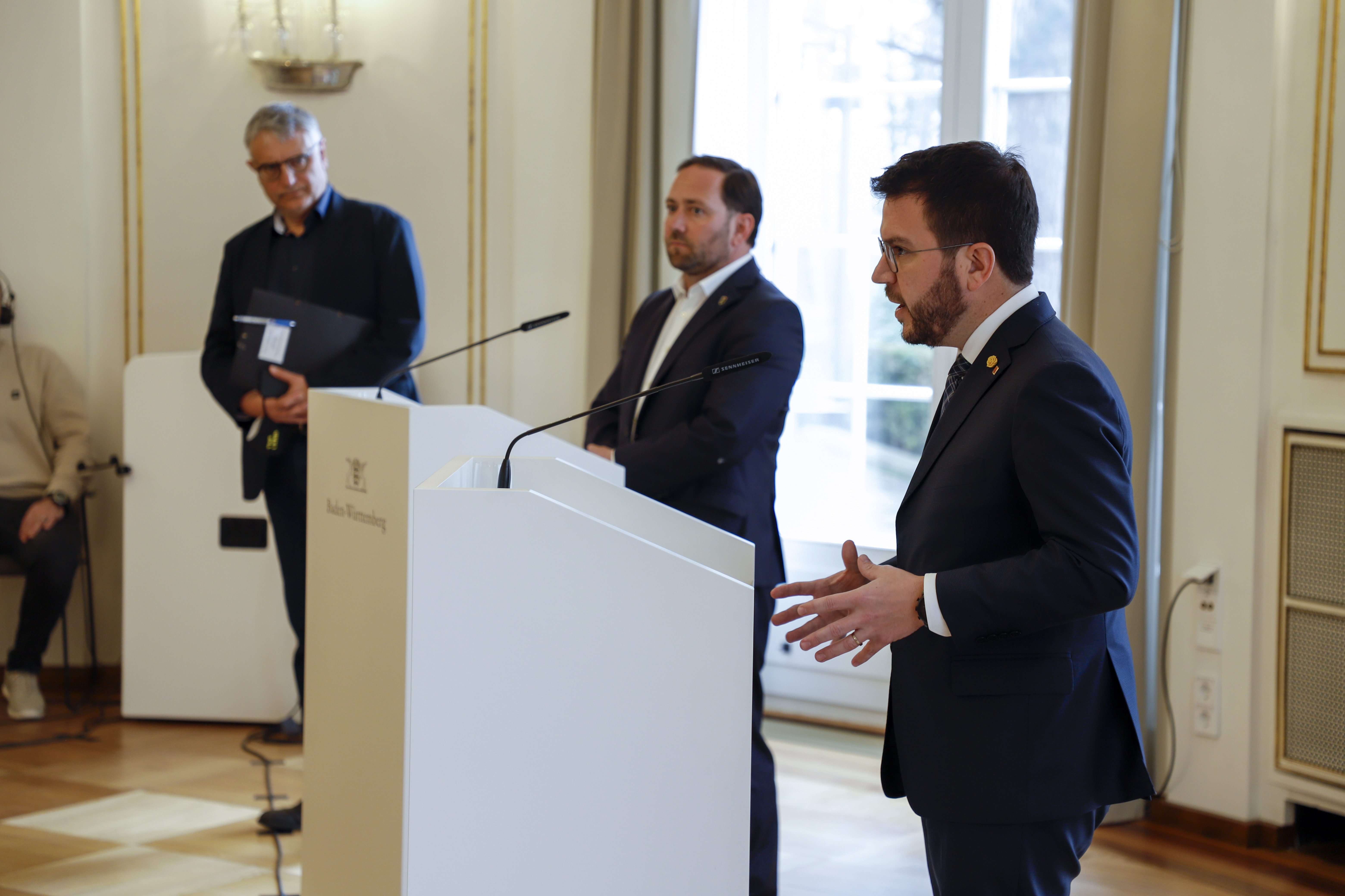 Ministerpräsident Winfried Kretschmann und Staatssekretär Florian Hassler haben den Präsidenten Kataloniens, Pere Aragonès, empfangen. Zwischen Baden-Württemberg und Katalonien bestehen vielfältige Verbindungen.