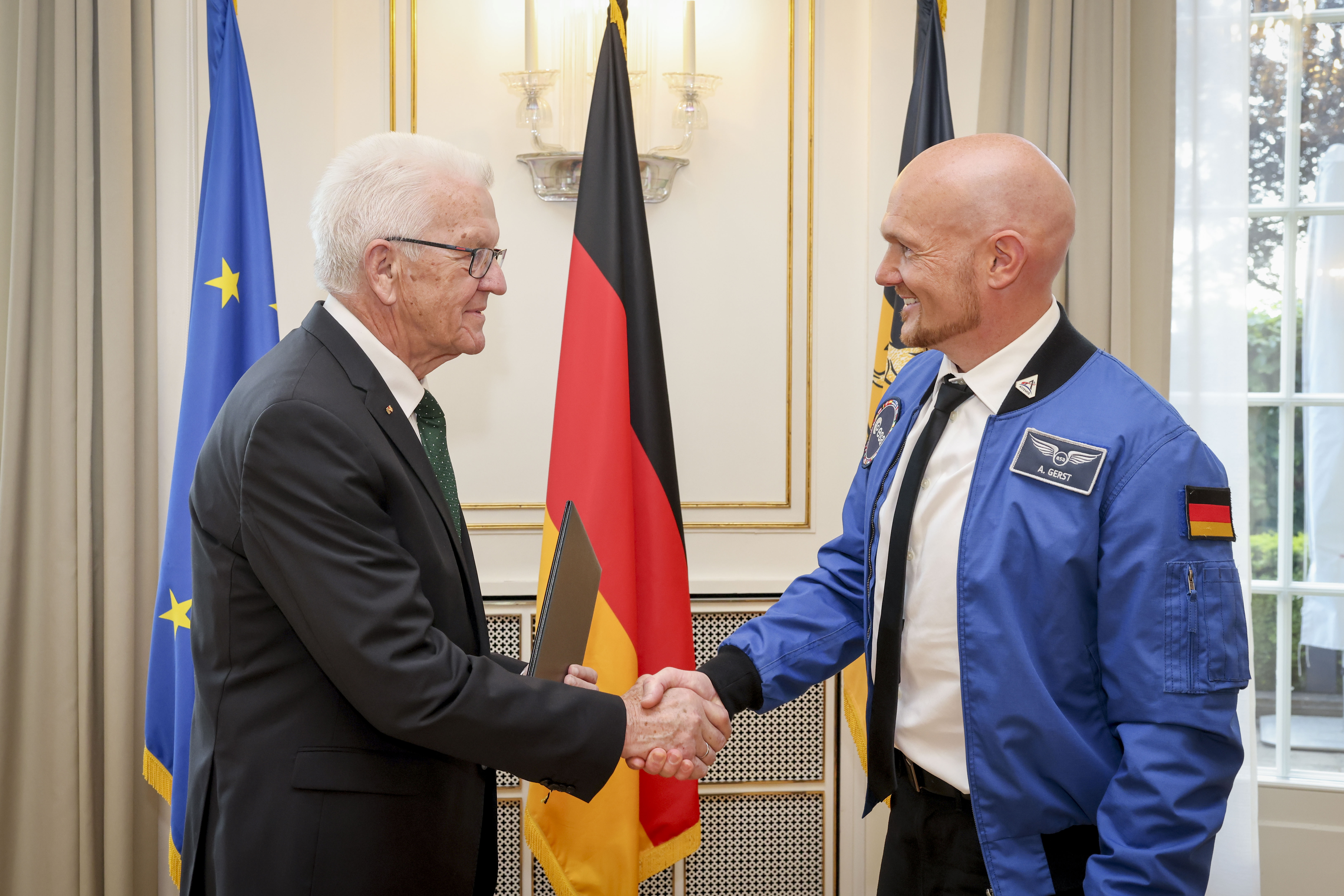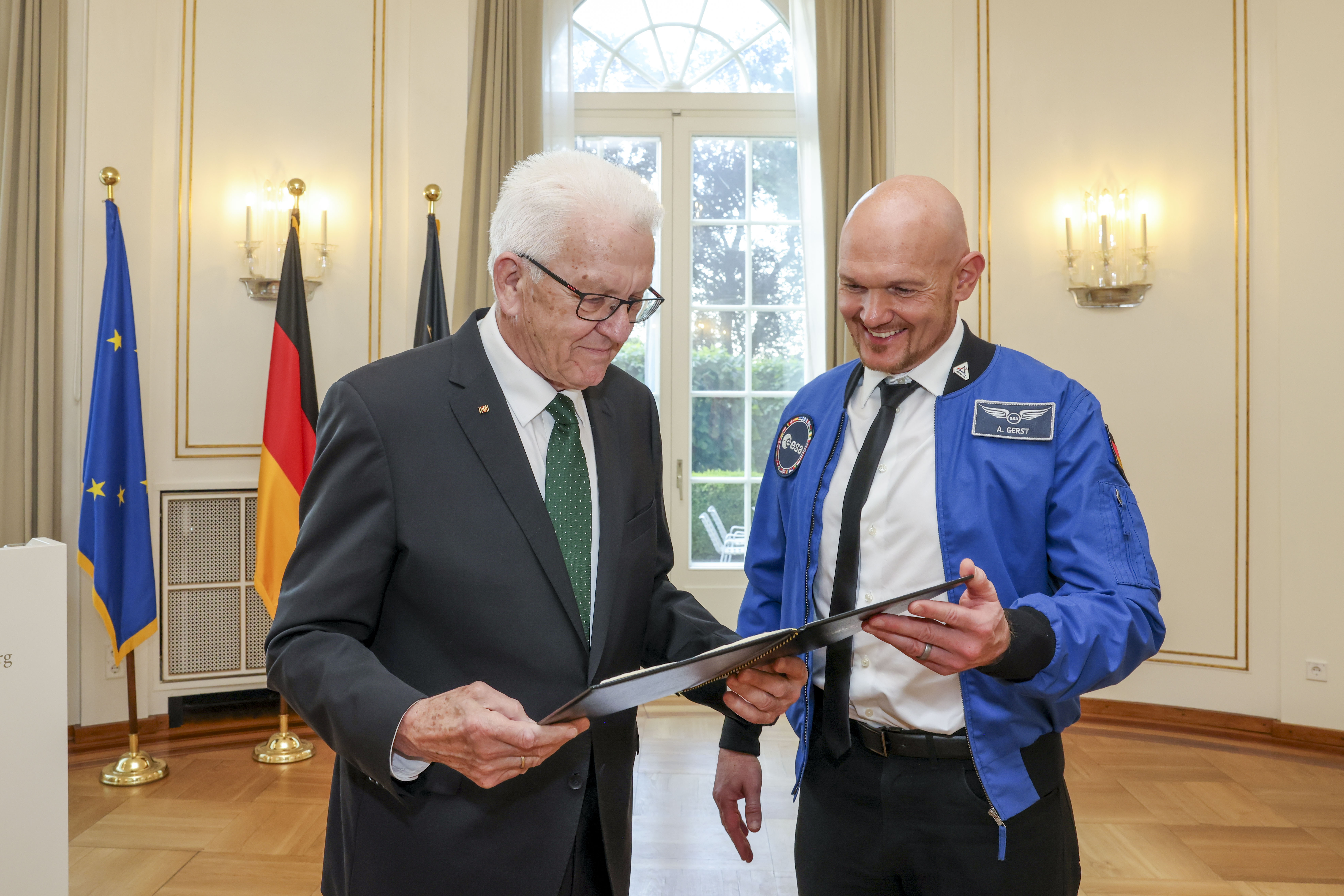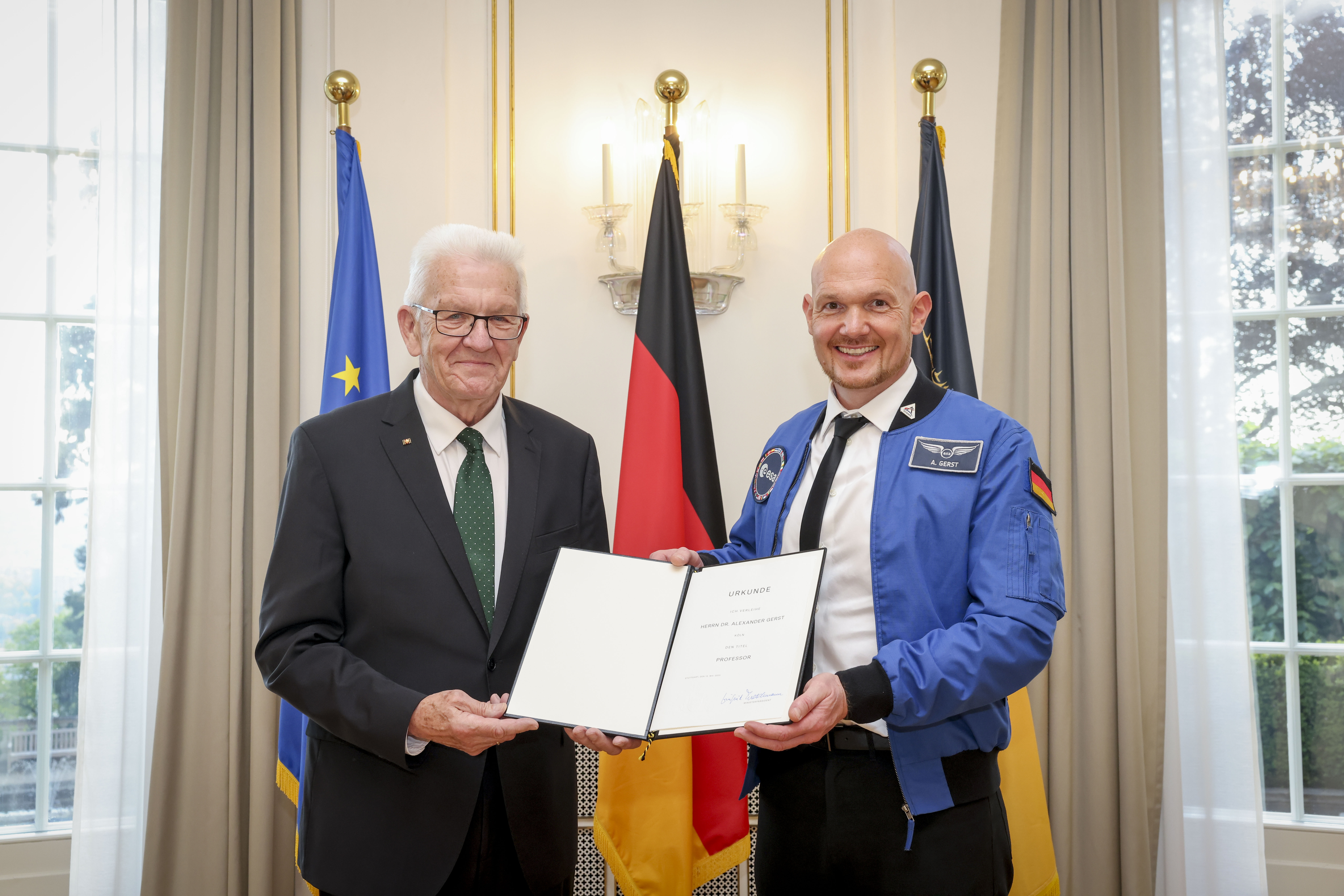 Ministerpräsident Winfried Kretschmann hat den Ehrentitel Professor an den Astronauten, Wissenschaftler und Raumfahrtbotschafter Dr. Alexander Gerst verliehen.