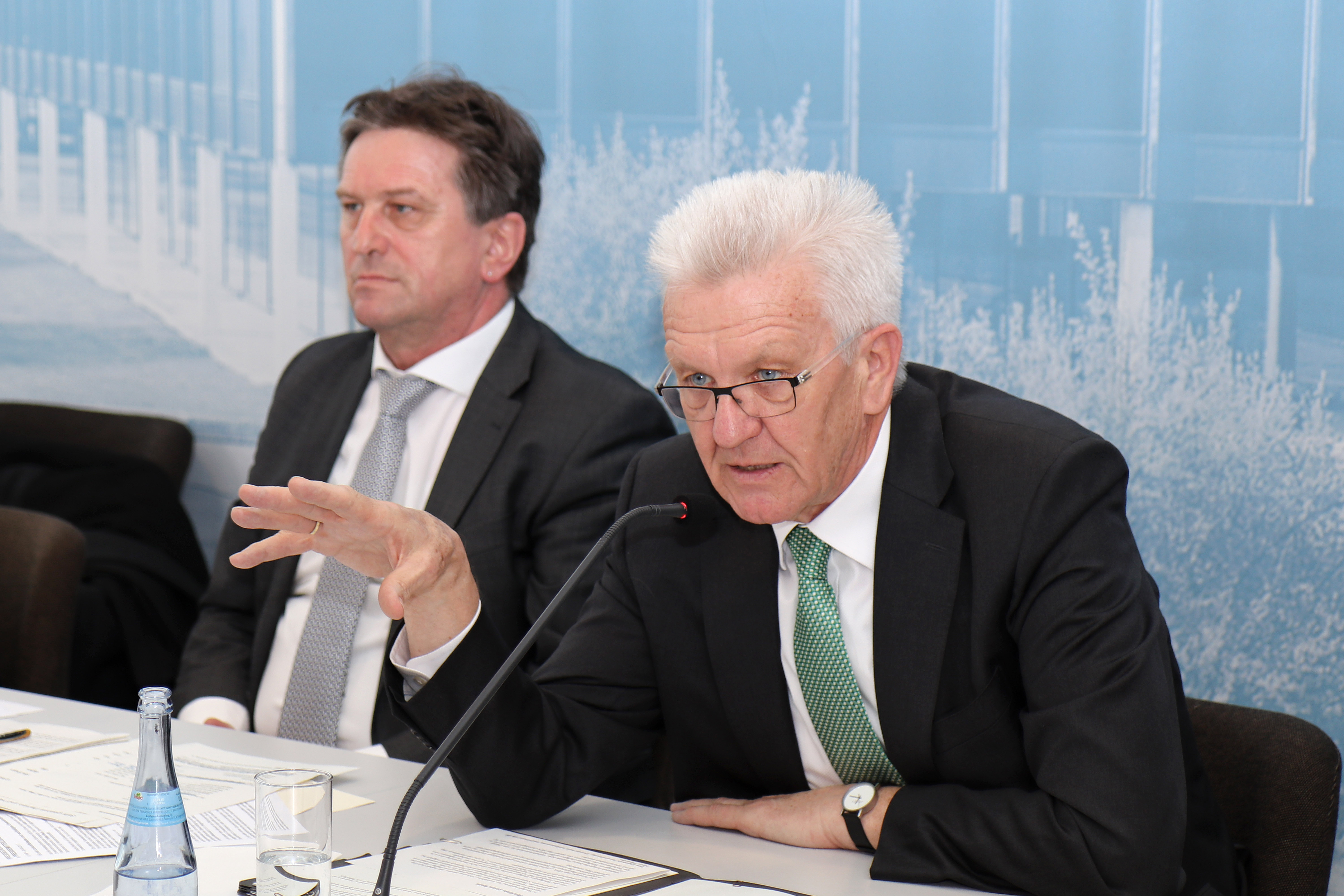 Ministerpräsident Winfried Kretschmann und Sozial- und Integrationsminister Manne Lucha haben in der Regierungspressekonferenz in Stuttgart das Jahreskrankenhausbauprogramm 2017 vorgestellt und Fragen der Journalisten beantwortet.