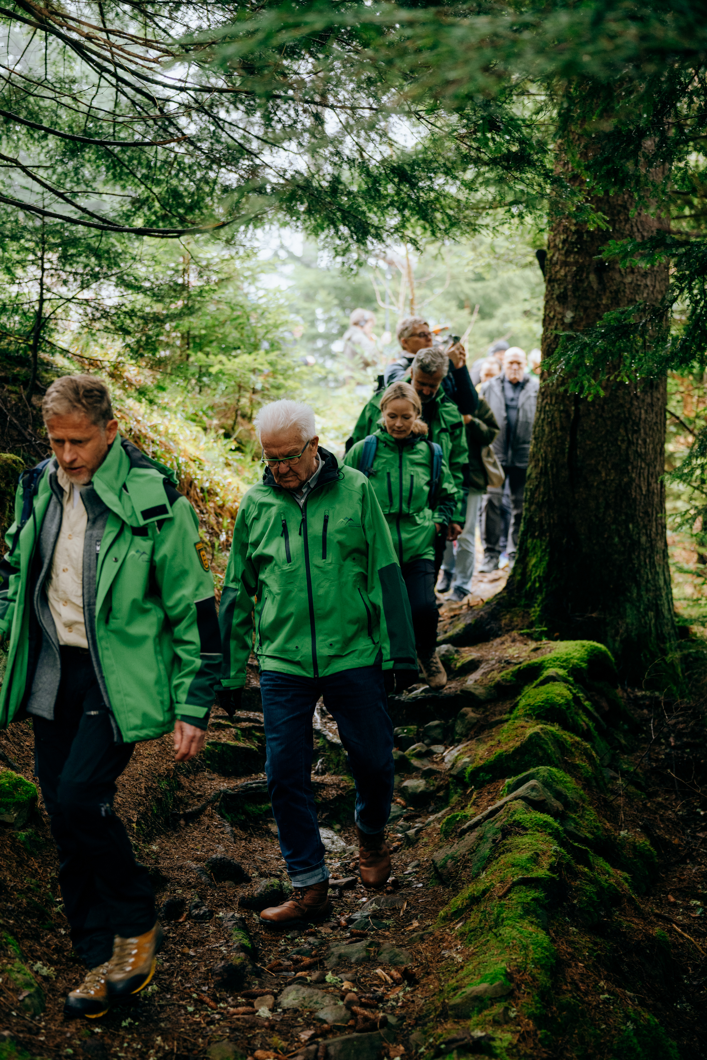 Ministerpräsident Winfried Kretschmann und Umweltministerin Thekla Walker haben eine Wanderung durch das Erweiterungsgebiet unternommen, das die beiden bisher getrennten Teile des Nationalparks Schwarzwald seit Anfang des Jahres miteinander verbindet. Am Abend wurde die Erweiterung mit einem Festakt im Neuen Schloss in Stuttgart gefeiert.