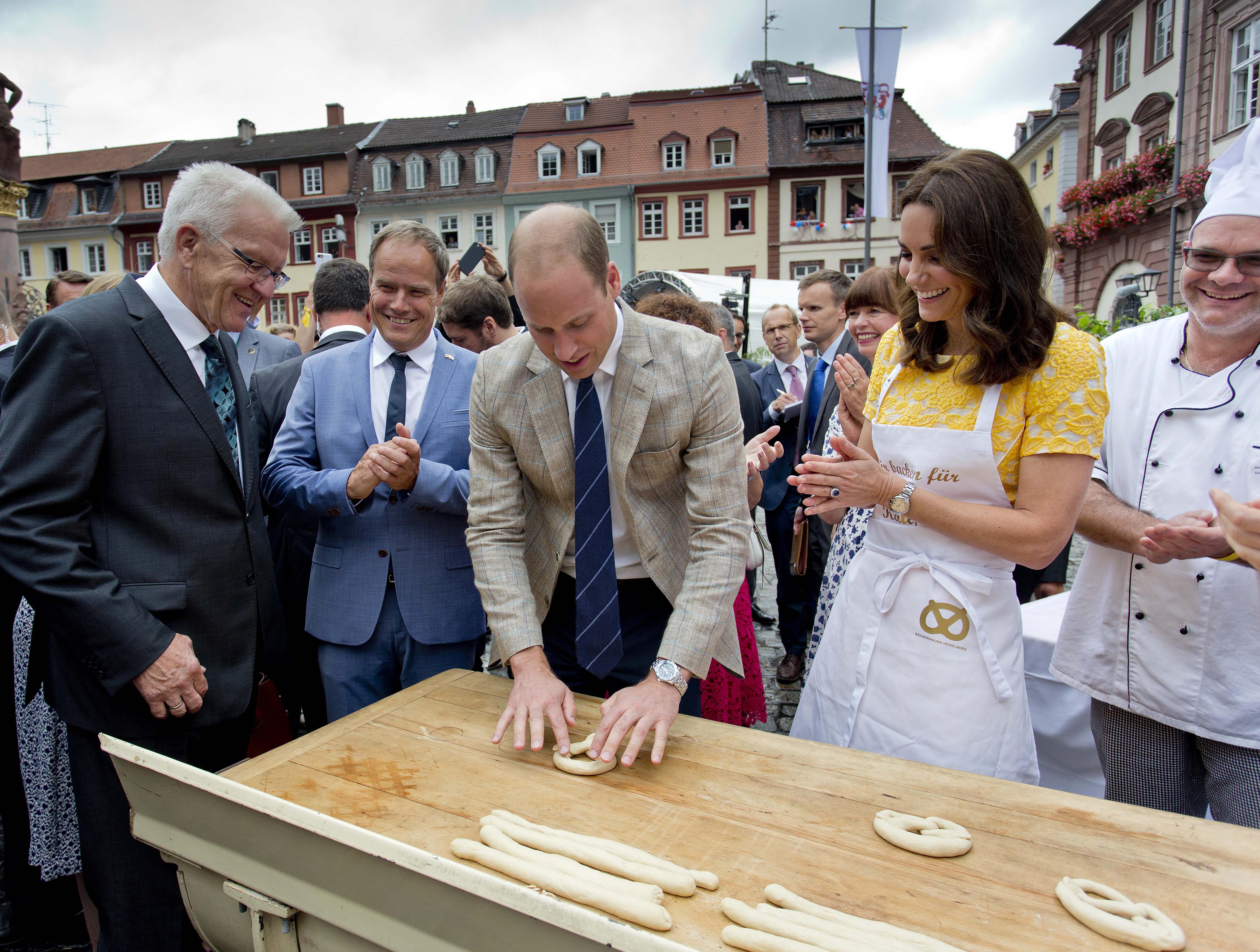 Prinz William und Catherine, Herzog und Herzogin von Cambridge, haben Heidelberg besucht. Ministerpräsident Winfried Kretschmann und seine Ehefrau Gerlinde begleiteten das Herzogpaar im Deutschen Krebsforschungszentrum, zum Marktplatz und auf dem Spaziergang zur Alten Brücke.