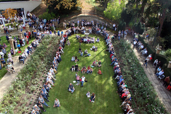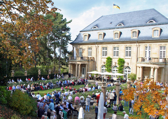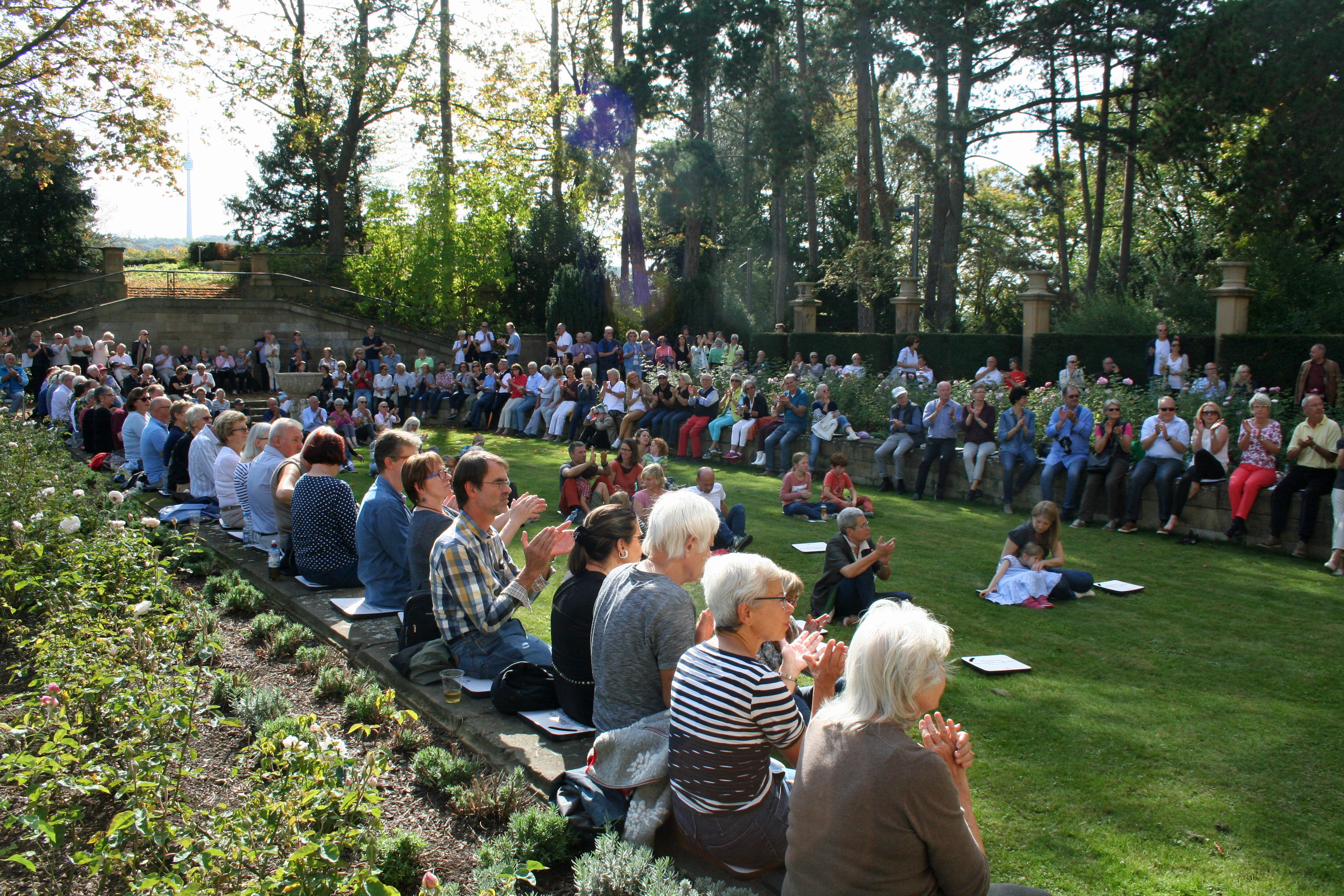 Besucherinnen und Besucher beim Jazzkonzert im Park der Villa Reitzenstein