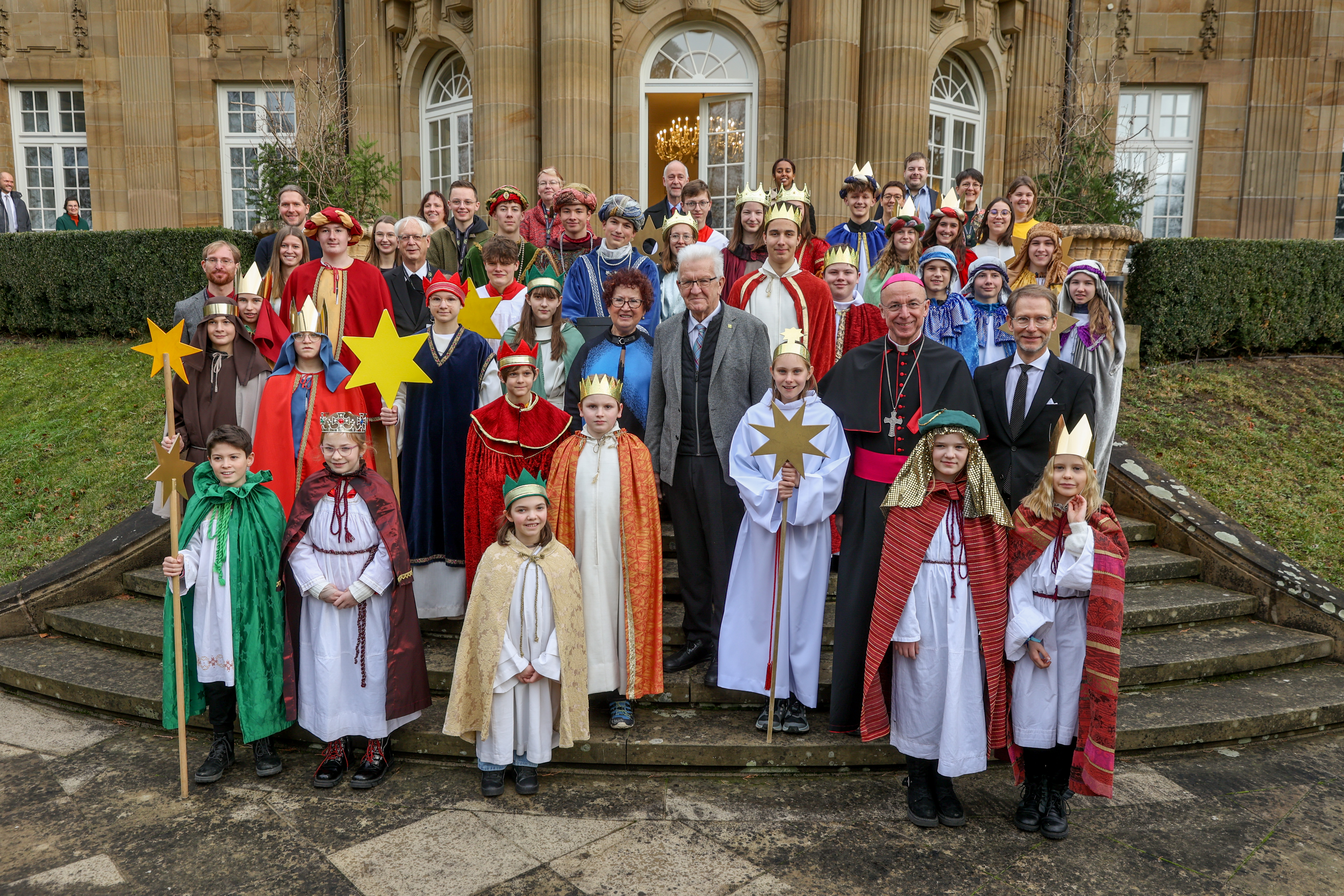 Ministerpräsident Winfried Kretschmann hat gemeinsam mit seiner Ehefrau Gerlinde und Staatsminister Dr. Florian Stegmann Sternsingerinnen und Sternsinger empfangen. Im Mittelpunkt der diesjährigen Sternsingeraktion stehen die Stärkung und der Schutz von Kindern in Indonesien und weltweit.