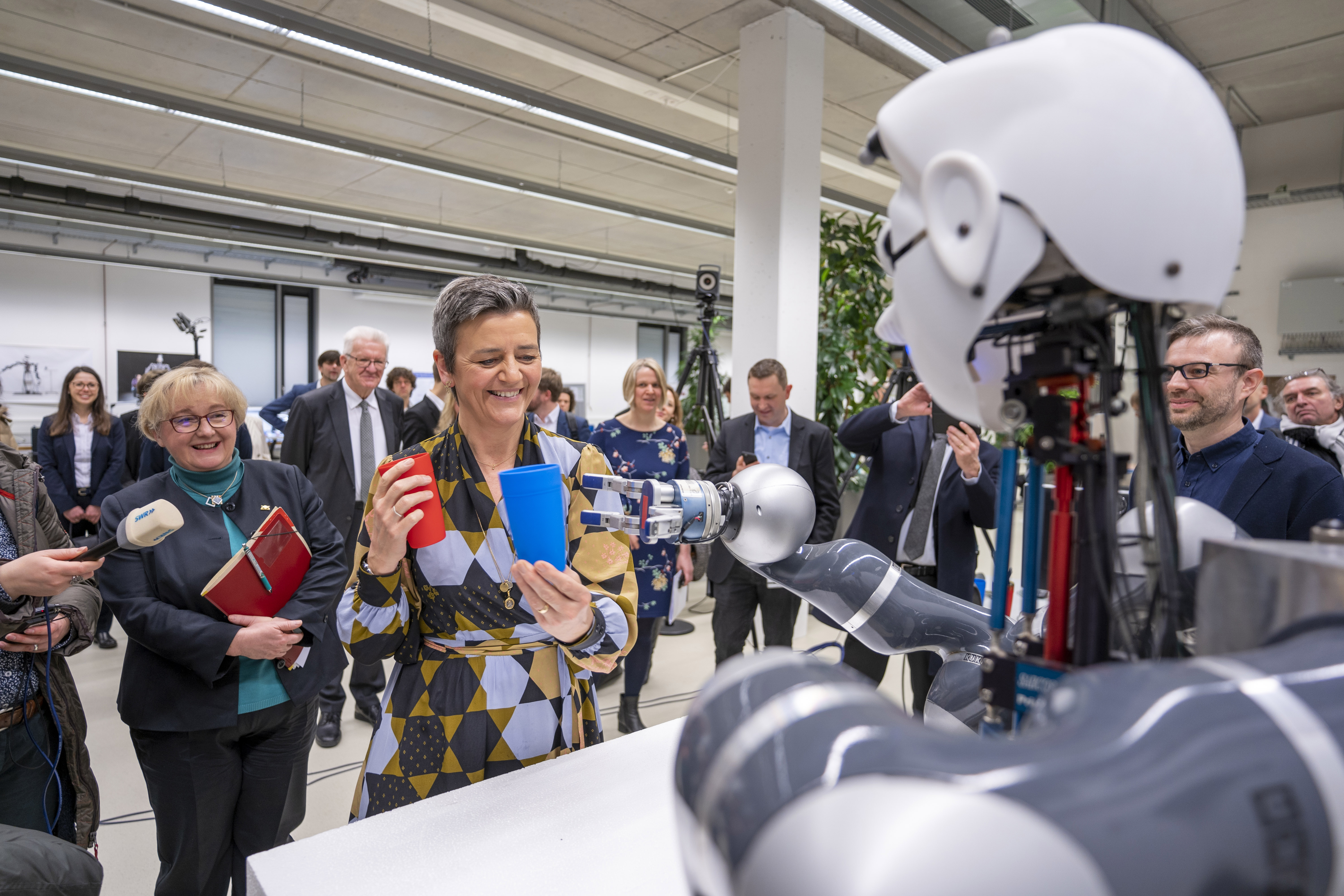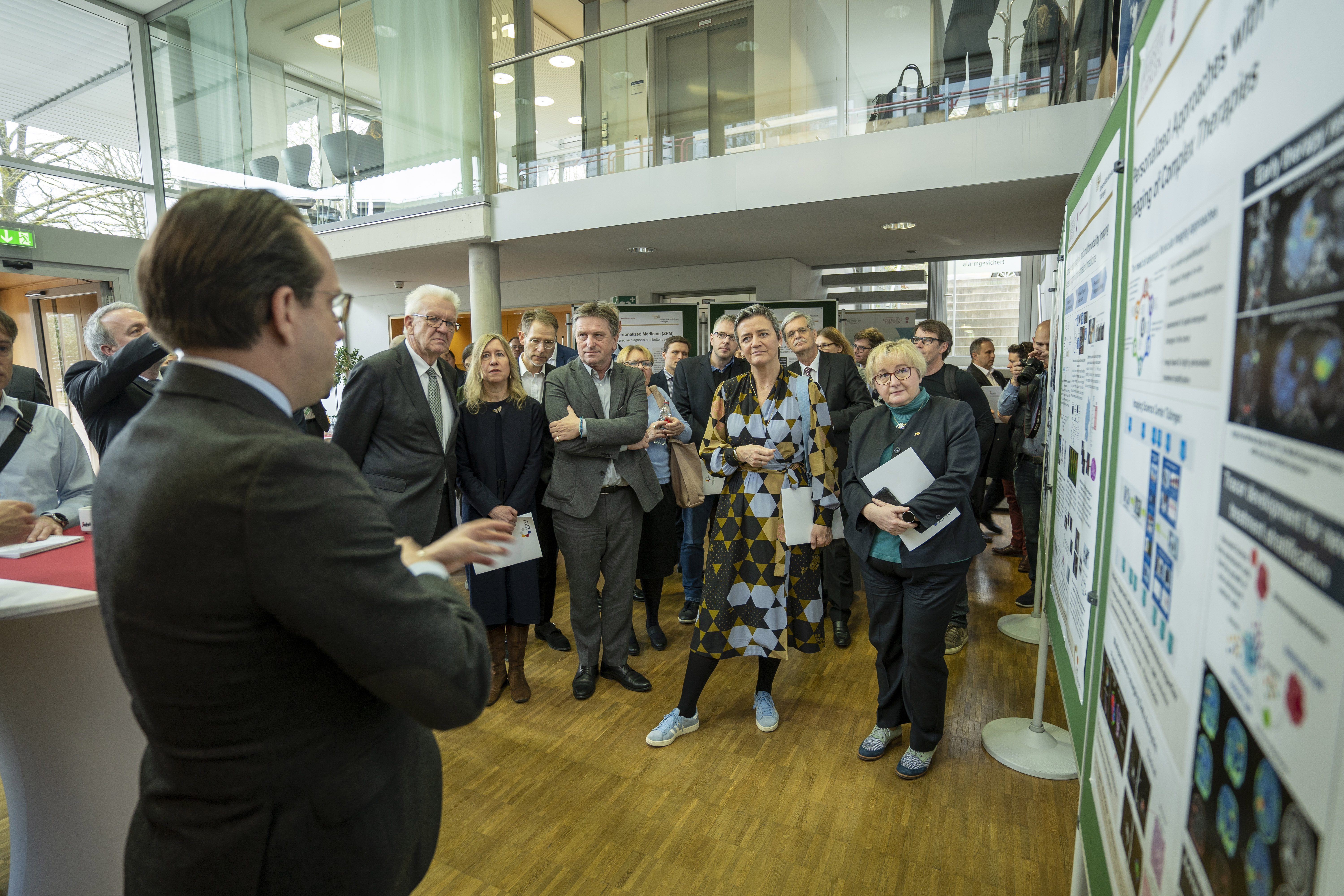Ministerpräsident Winfried Kretschmann hat die Exekutiv-Vizepräsidentin der EU-Kommission, Margrethe Vestager, in Tübingen getroffen. Gemeinsam besuchten sie das Cyber Valley am Max-Planck-Institut für Intelligente Systeme sowie das Zentrum für Personalisierte Medizin am Universitätsklinikum Tübingen.