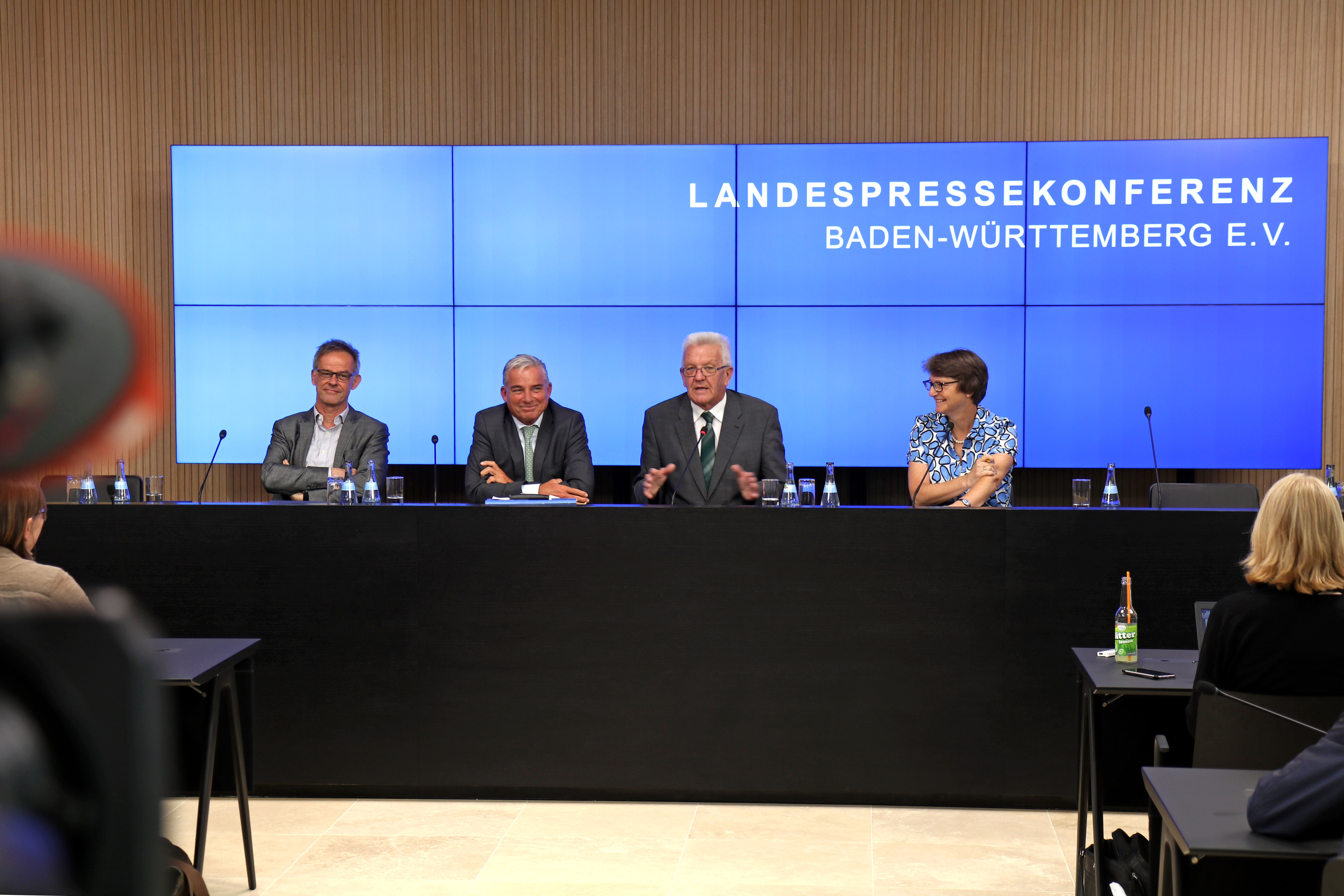 Ministerpräsident Winfried Kretschmann und Innenminister Thomas Strobl haben in der Regierungspressekonferenz im neuen Bürger- und Medienzentrum des Landtags in Stuttgart die Verbesserungen in der Sicherheitspolitik vorgestellt. Des Weiteren beantworteten sie Fragen der Journalisten.
