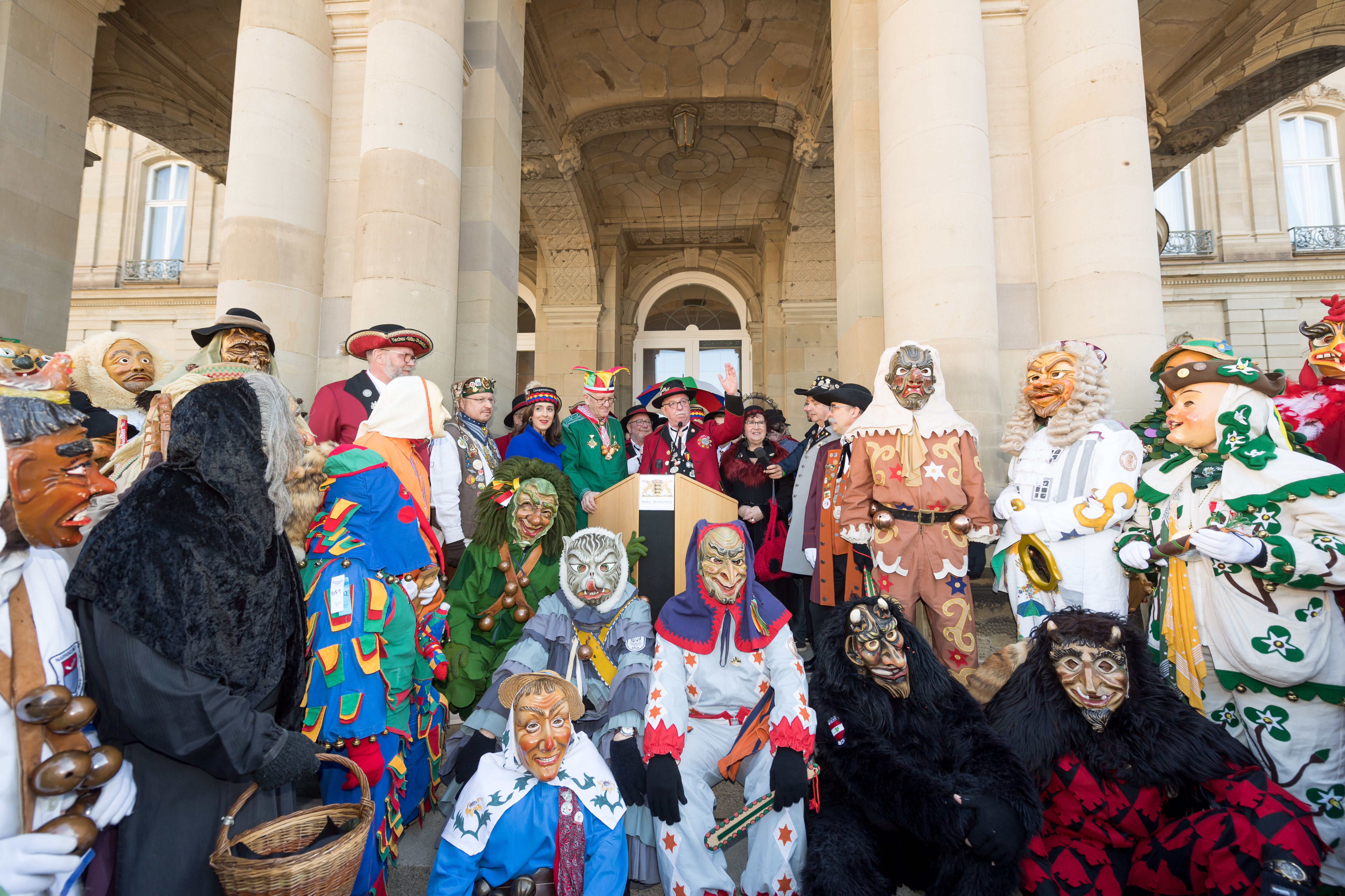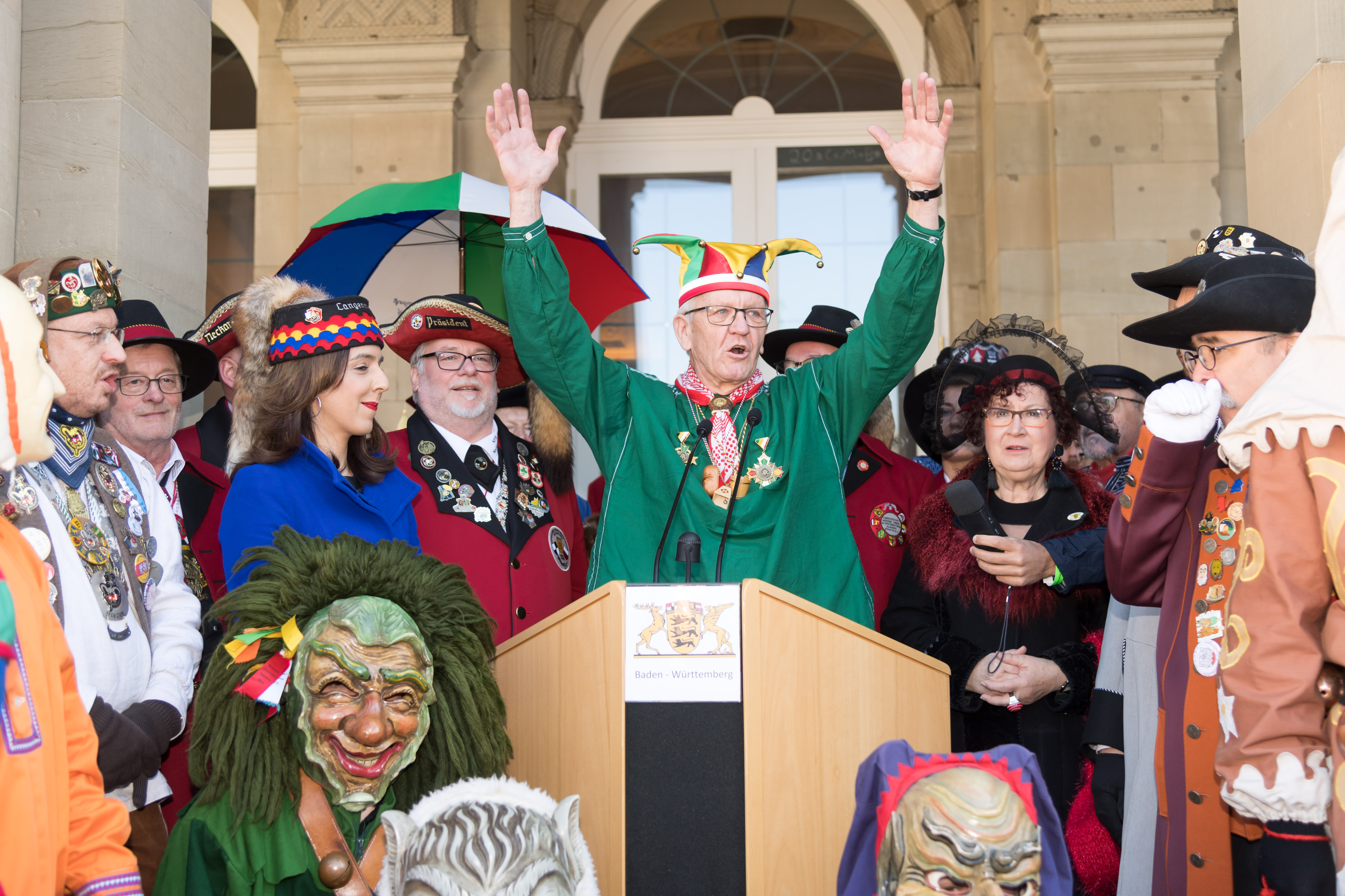 Zum traditionellen „Närrischen Staatsempfang der Landesregierung“ hat Ministerpräsident Winfried Kretschmann auch in diesem Jahr wieder Vertreterinnen und Vertreter der schwäbischen und alemannischen Narrenzünfte in das Neue Schloss in Stuttgart eingeladen.
