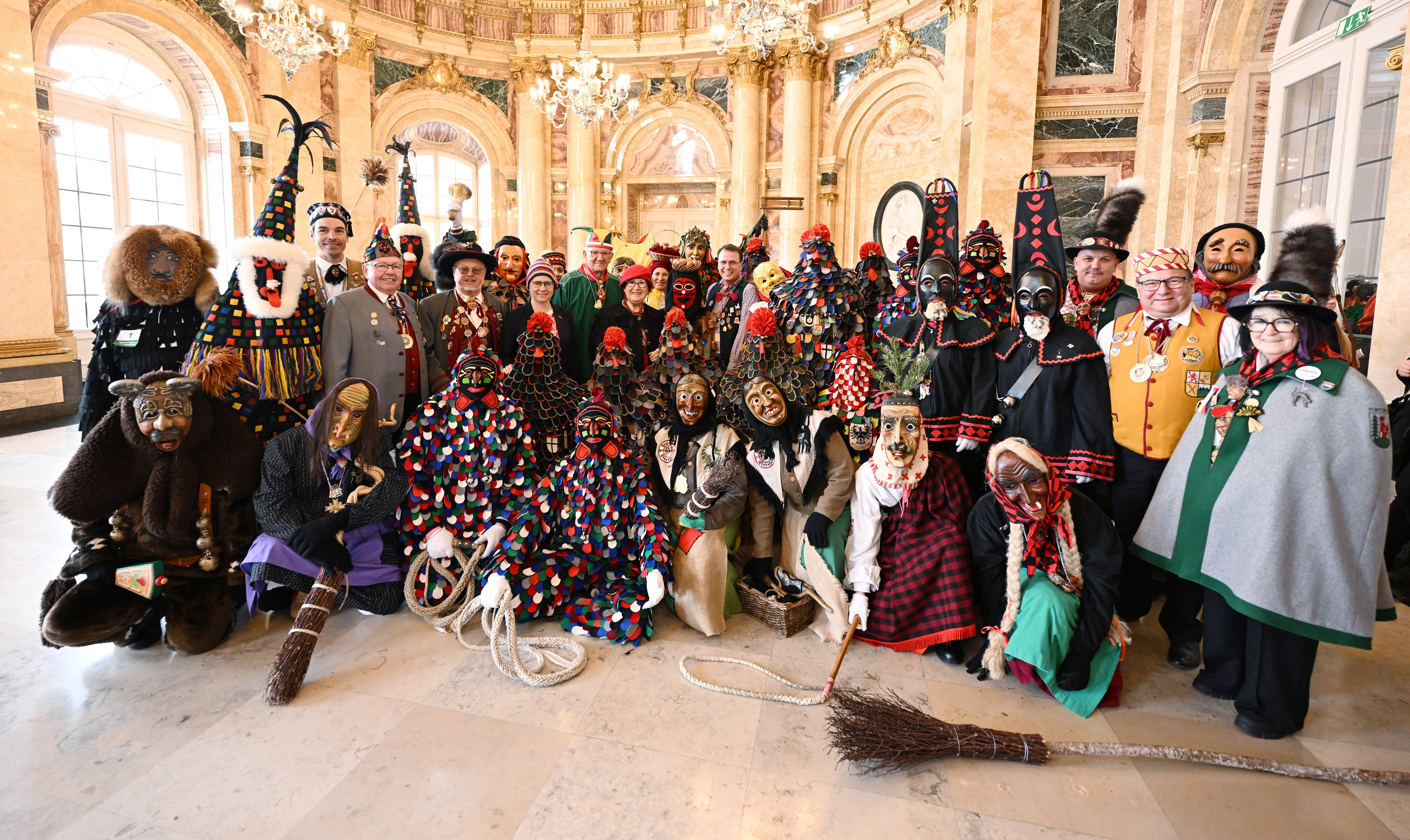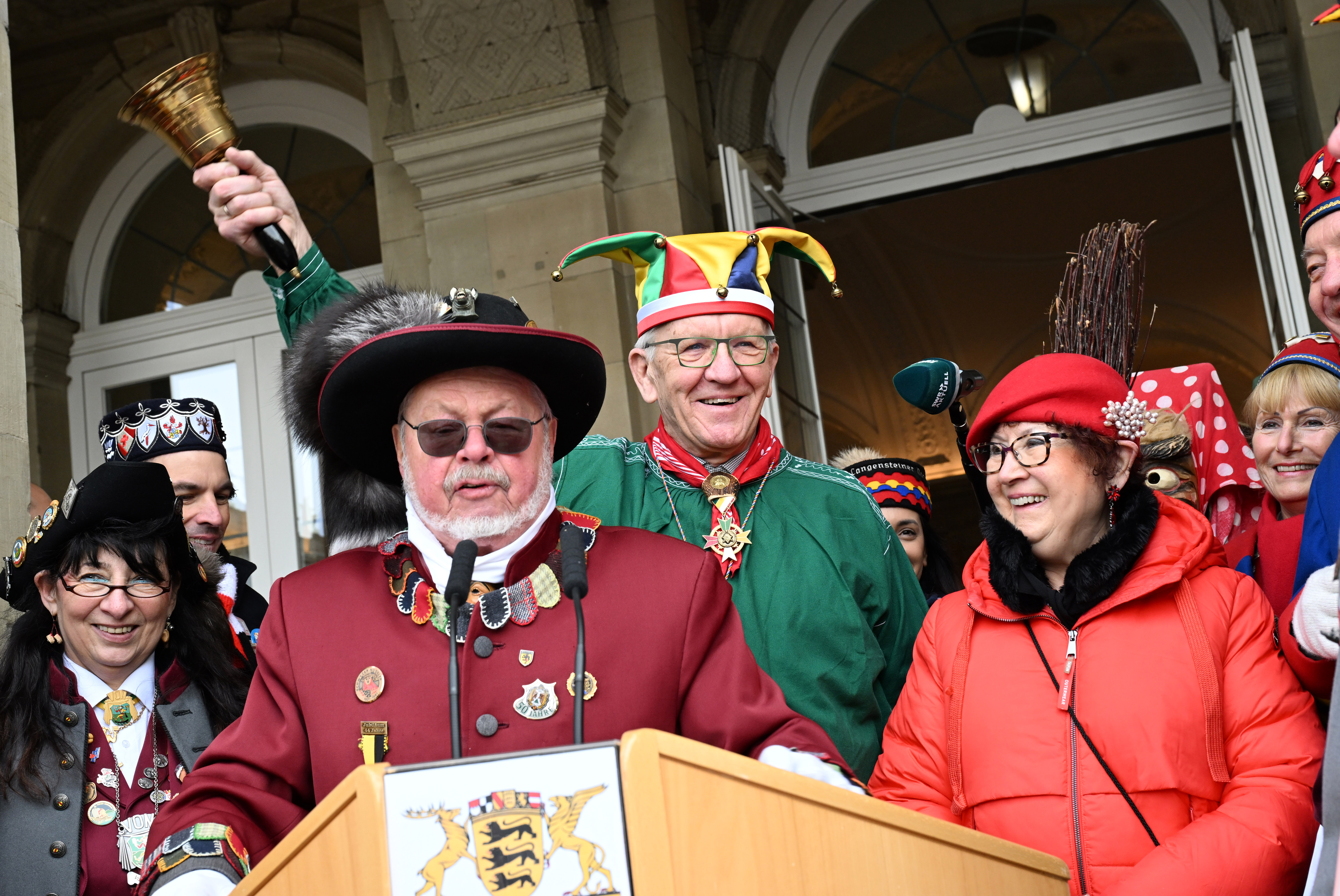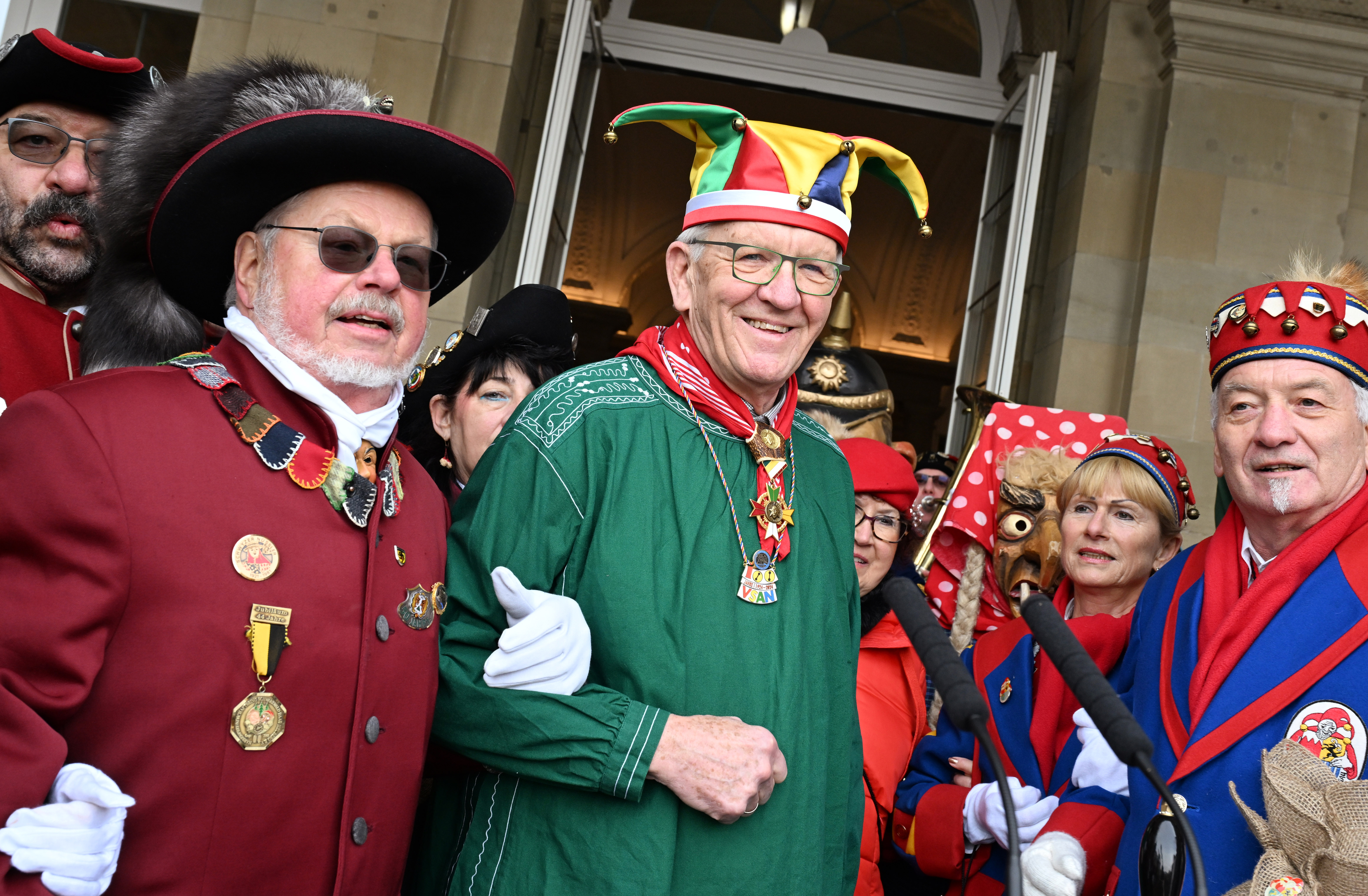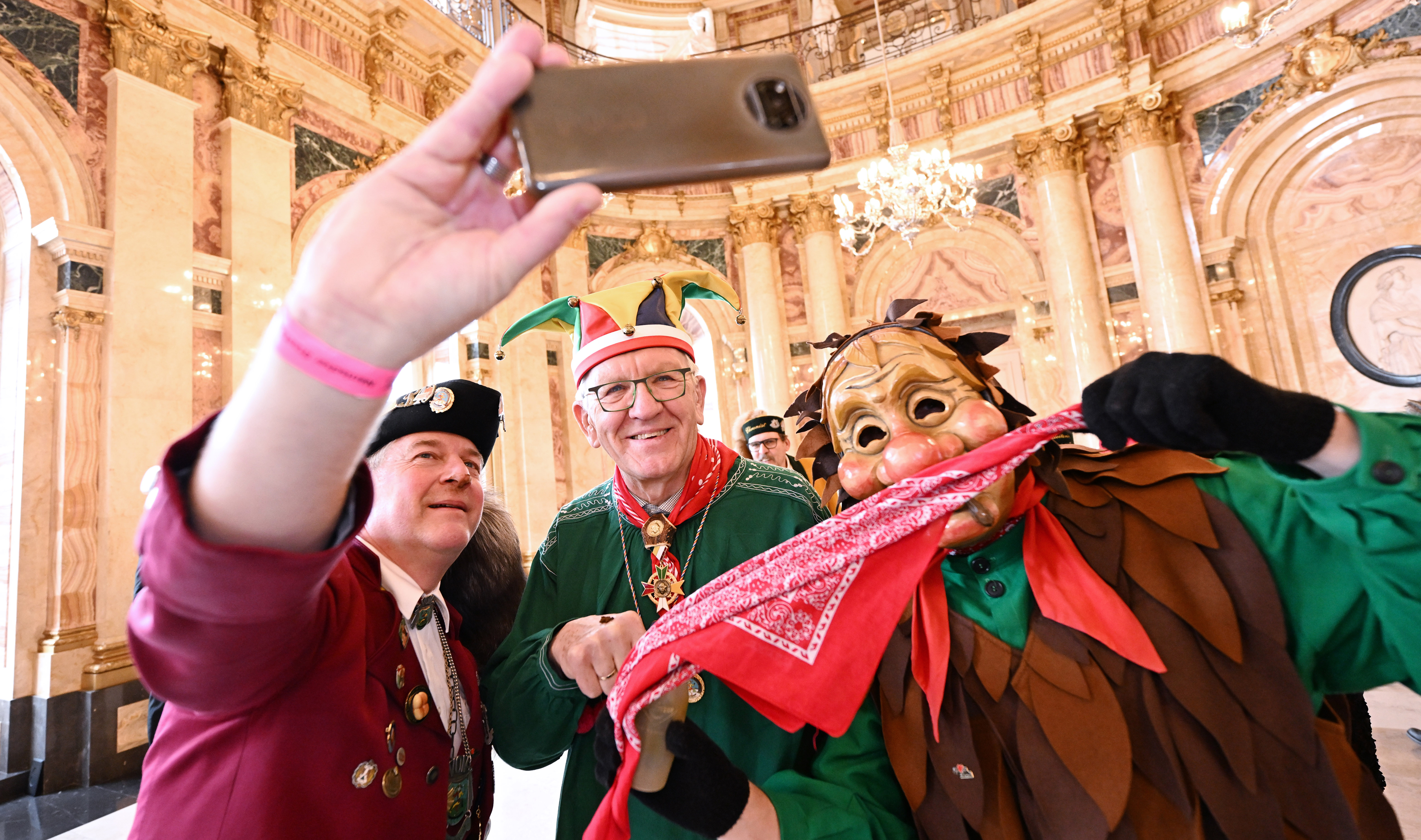 Zum traditionellen „Närrischen Staatsempfang der Landesregierung“ hat Ministerpräsident Winfried Kretschmann wieder Vertreterinnen und Vertreter der schwäbischen und alemannischen Narrenzünfte nach Stuttgart eingeladen.