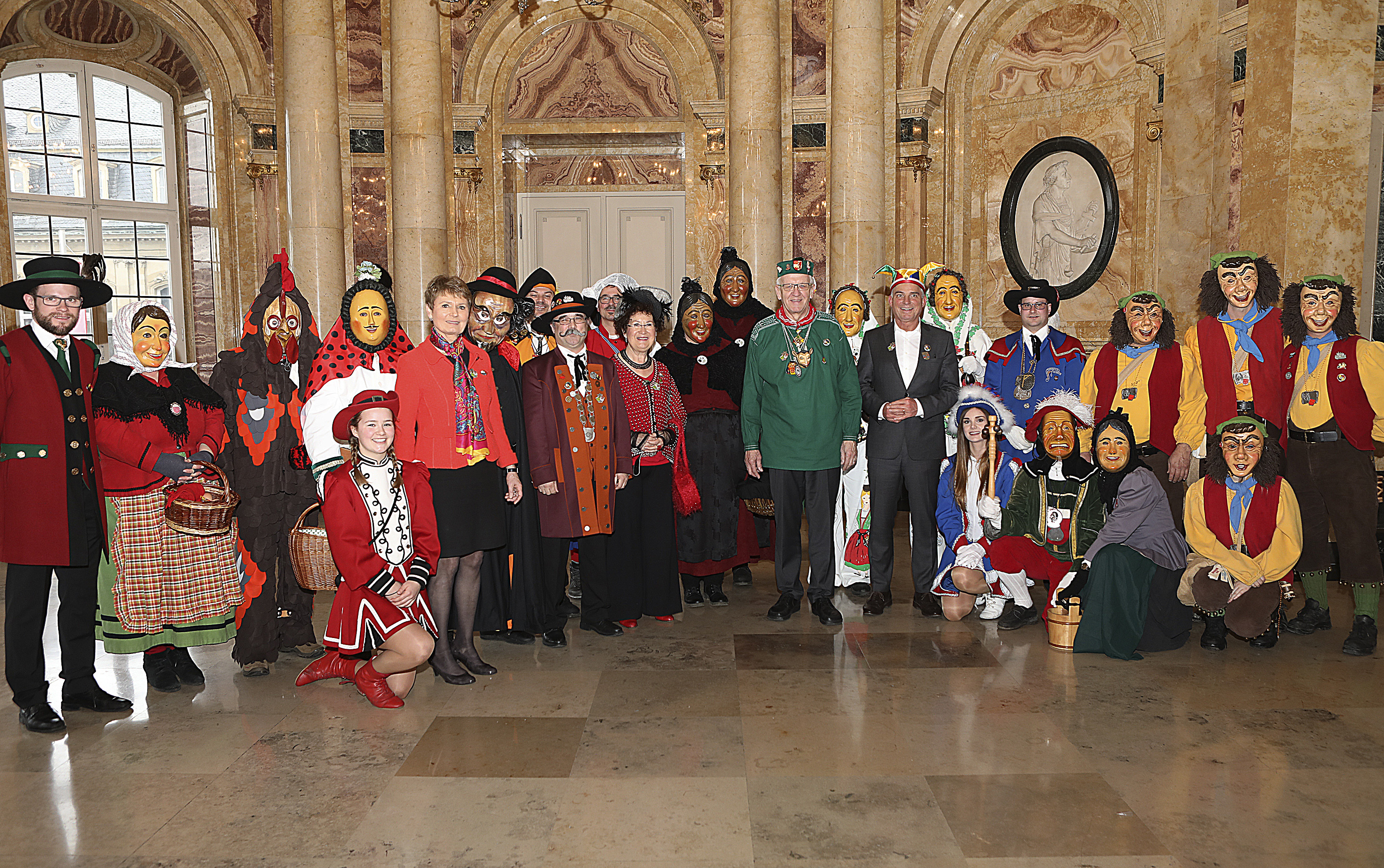 Zum traditionellen „Närrischen Staatsempfang der Landesregierung“ hat Ministerpräsident Winfried Kretschmann auch in diesem Jahr wieder Vertreterinnen und Vertreter der schwäbischen und alemannischen Narrenzünfte in das Neue Schloss in Stuttgart eingeladen.