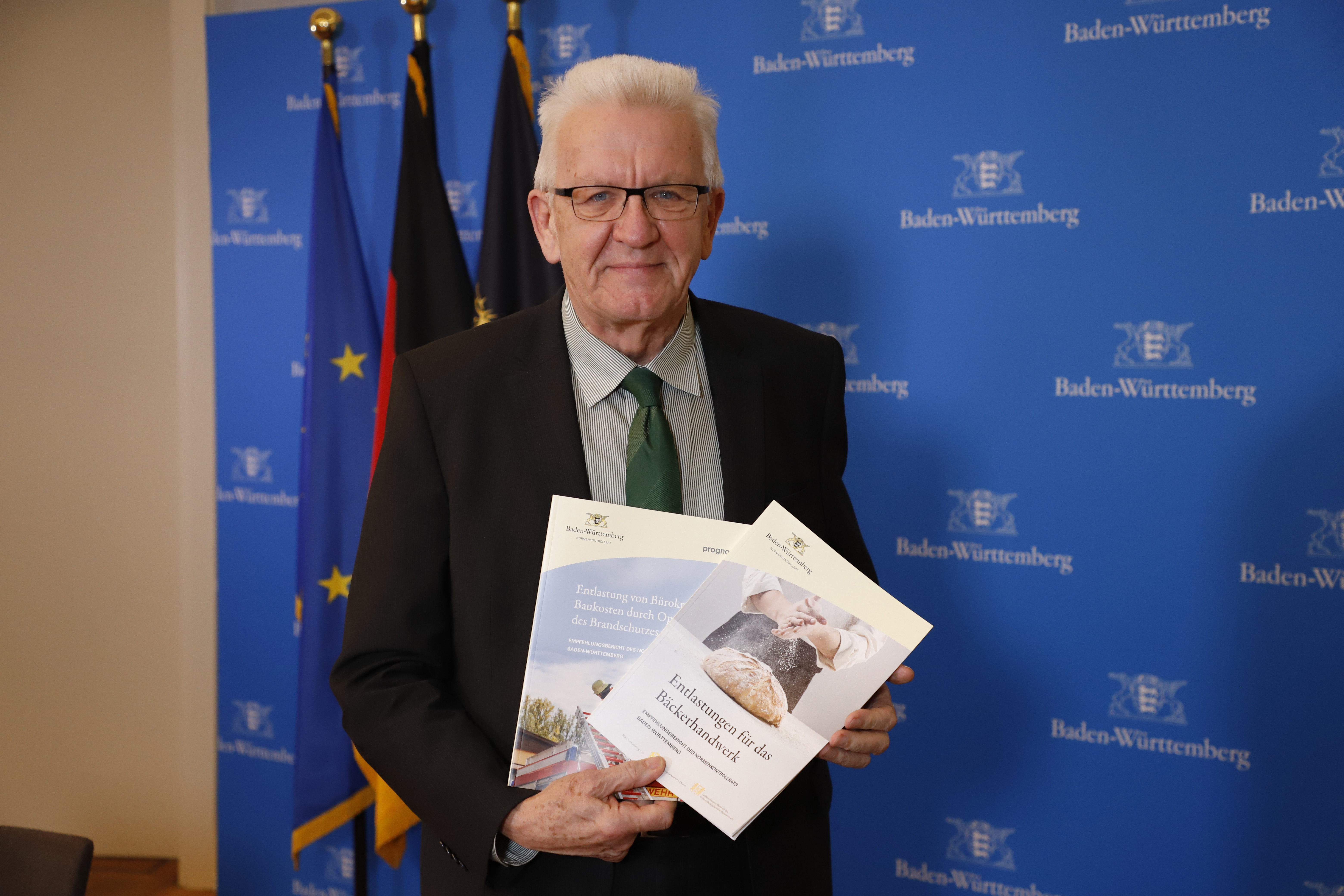Ministerpräsident Winfried Kretschmann hat zwei neue Empfehlungsberichte des Normenkontrollrats Baden-Württemberg zum Bürokratieabbau entgegengenommen. Die Berichte zeigen, wie Entlastungen im Bereich des Bäckereihandwerk und des Brandschutzes erzielt werden können.