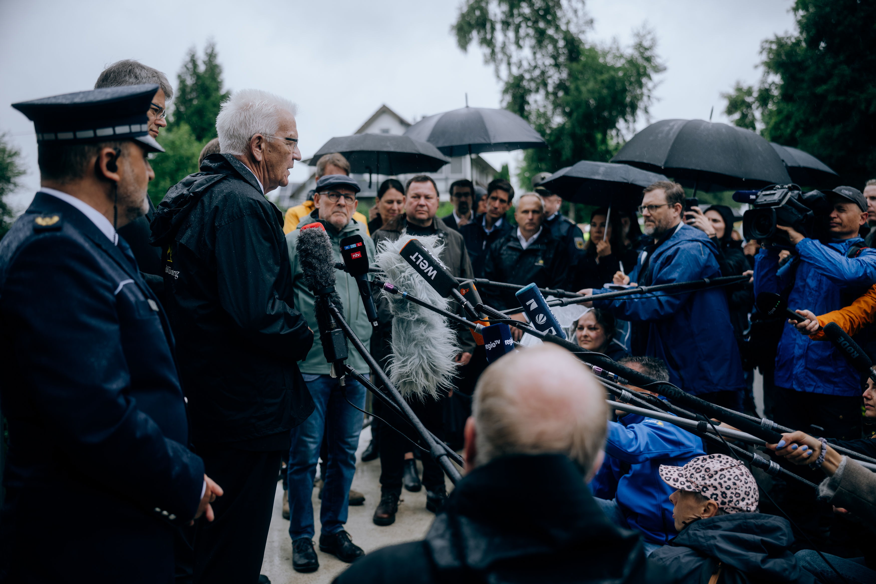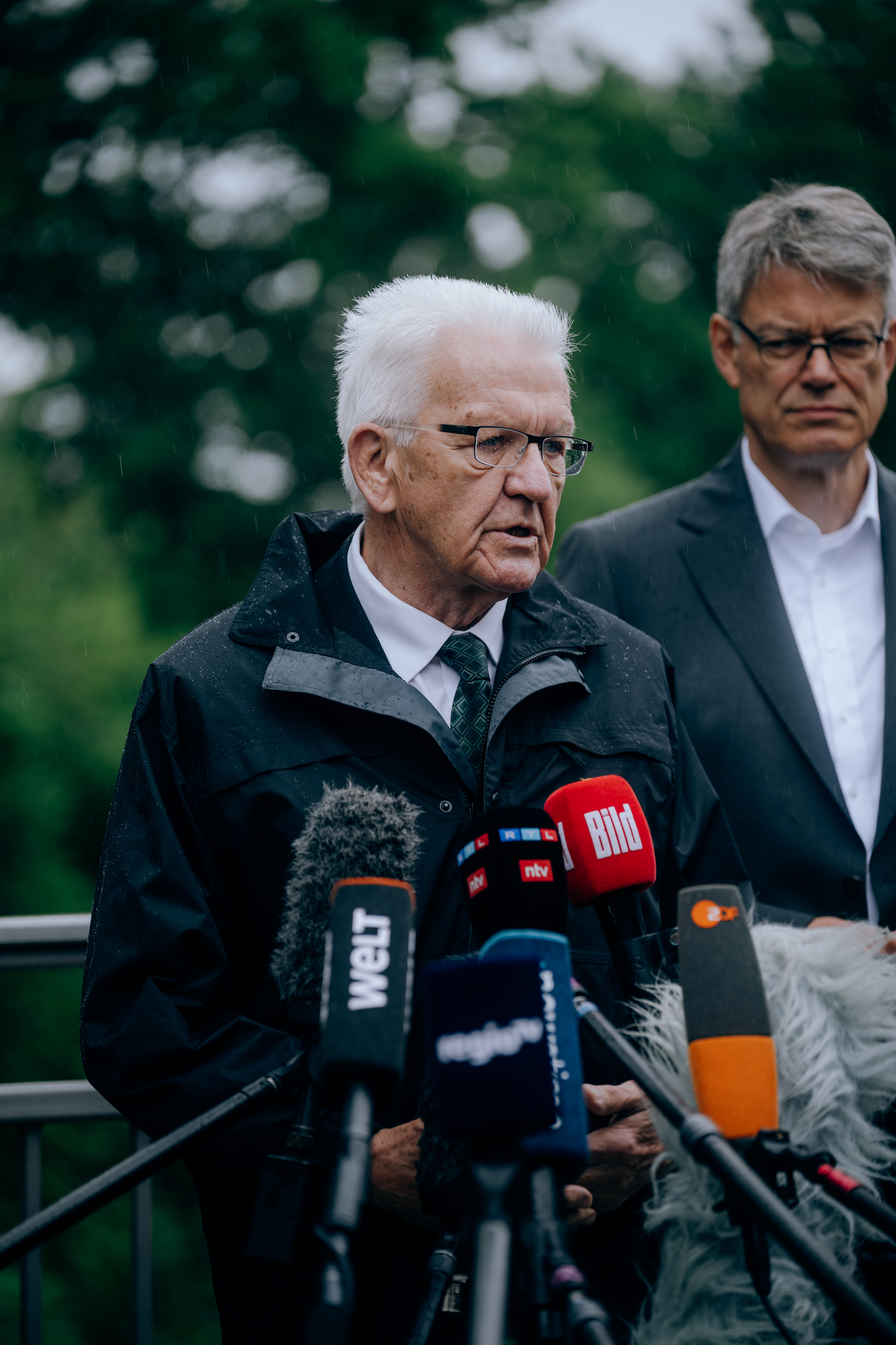 Bei Riedlingen im Landkreis Biberach ist ein Regionalzug entgleist. Ministerpräsident Winfried Kretschmann besuchte mit Verkehrsminister Winfried Hermann, Bundesverkehrsminister Patrick Schnieder und Bahnchef Richard Lutz den Ort des Geschehens.