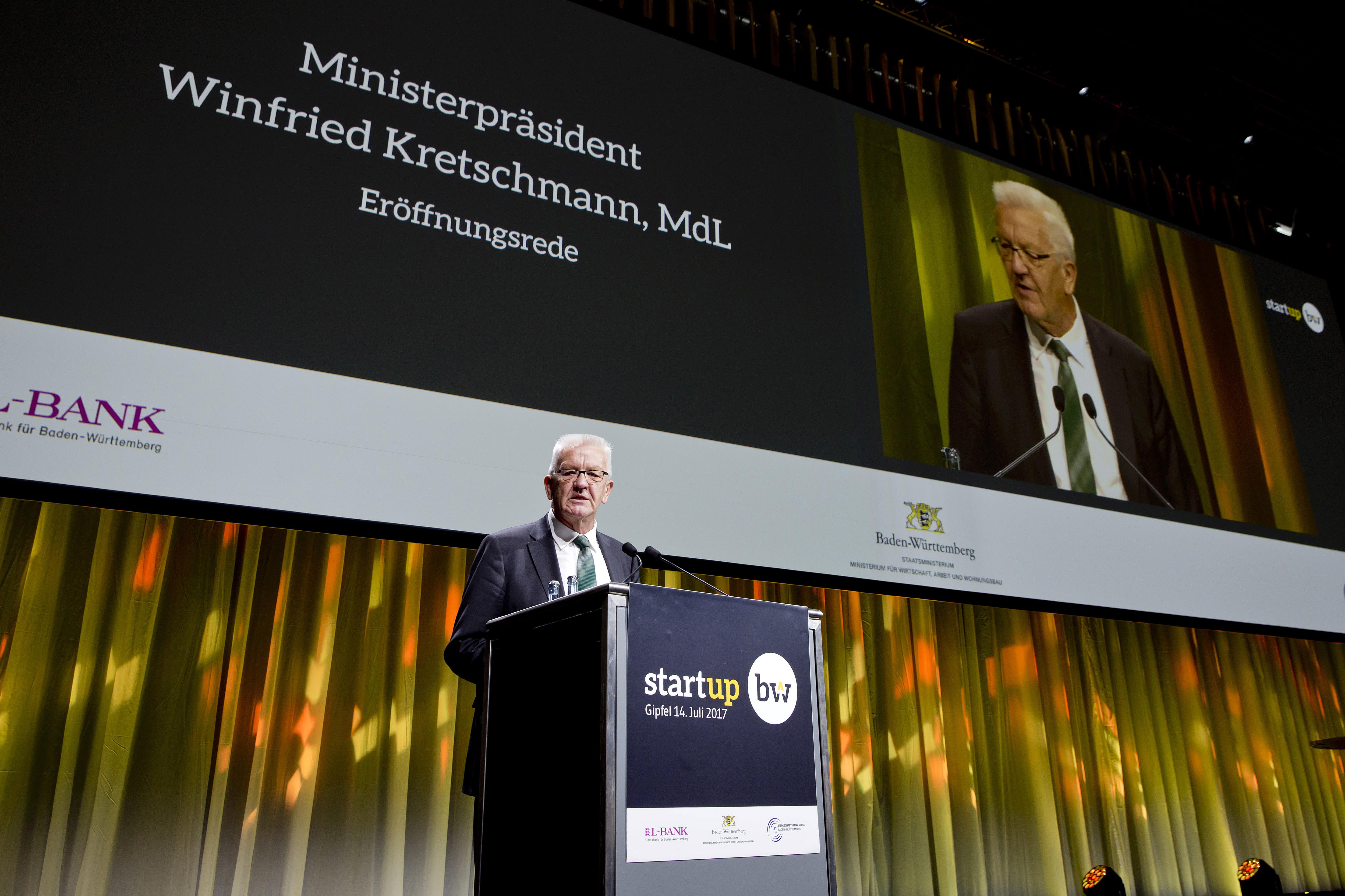 Ministerpräsident Winfried Kretschmann und Wirtschaftsministerin Dr. Nicole Hoffmeister-Kraut haben am 14. Juli 2017 auf dem Start-up-Gipfel Baden-Württemberg mit über 2.600 Teilnehmern den Startschuss für die neue Gründungsoffensive des Landes unter dem Titel „Start-up BW“ gegeben.