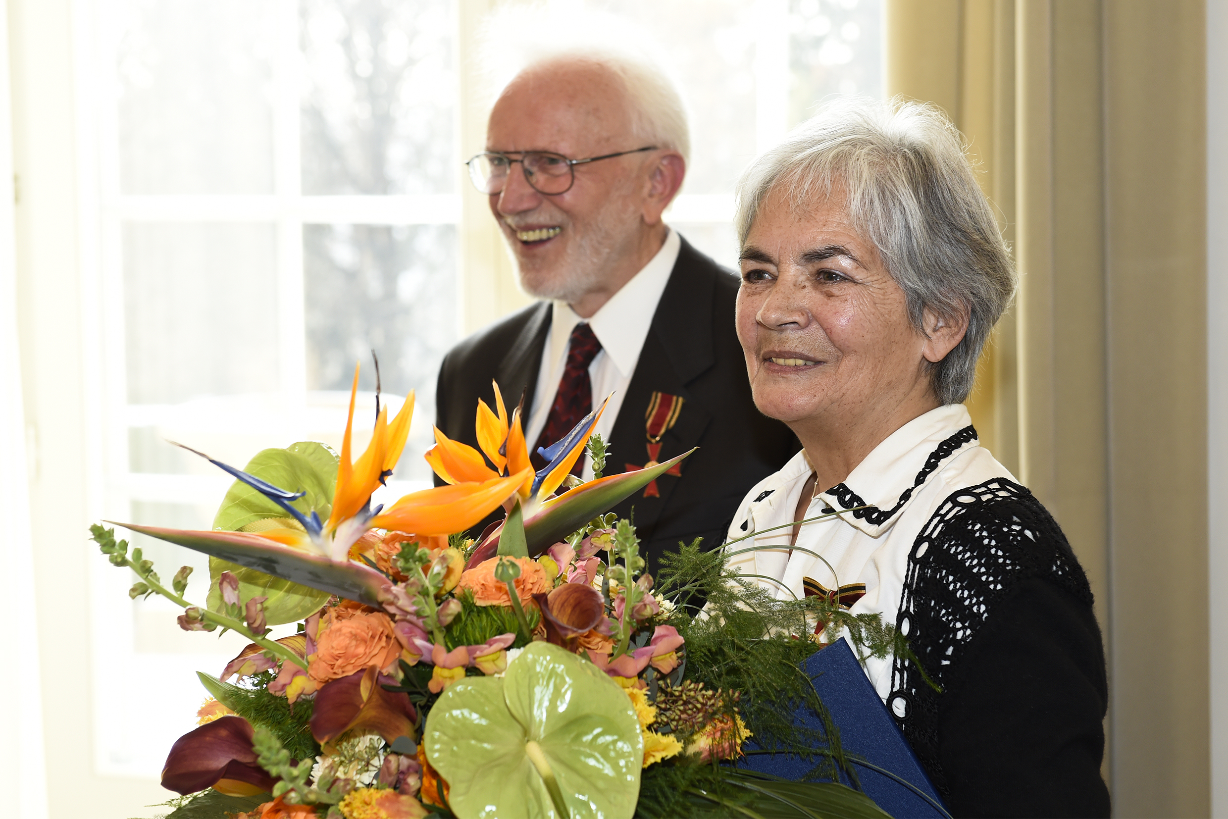 Staatsrätin Gisela Erler hat Ilse und Albert Bäumer in der Villa Reitzenstein in Stuttgart das Verdienstkreuz am Bande des Verdienstordens der Bundesrepublik Deutschland überreicht.