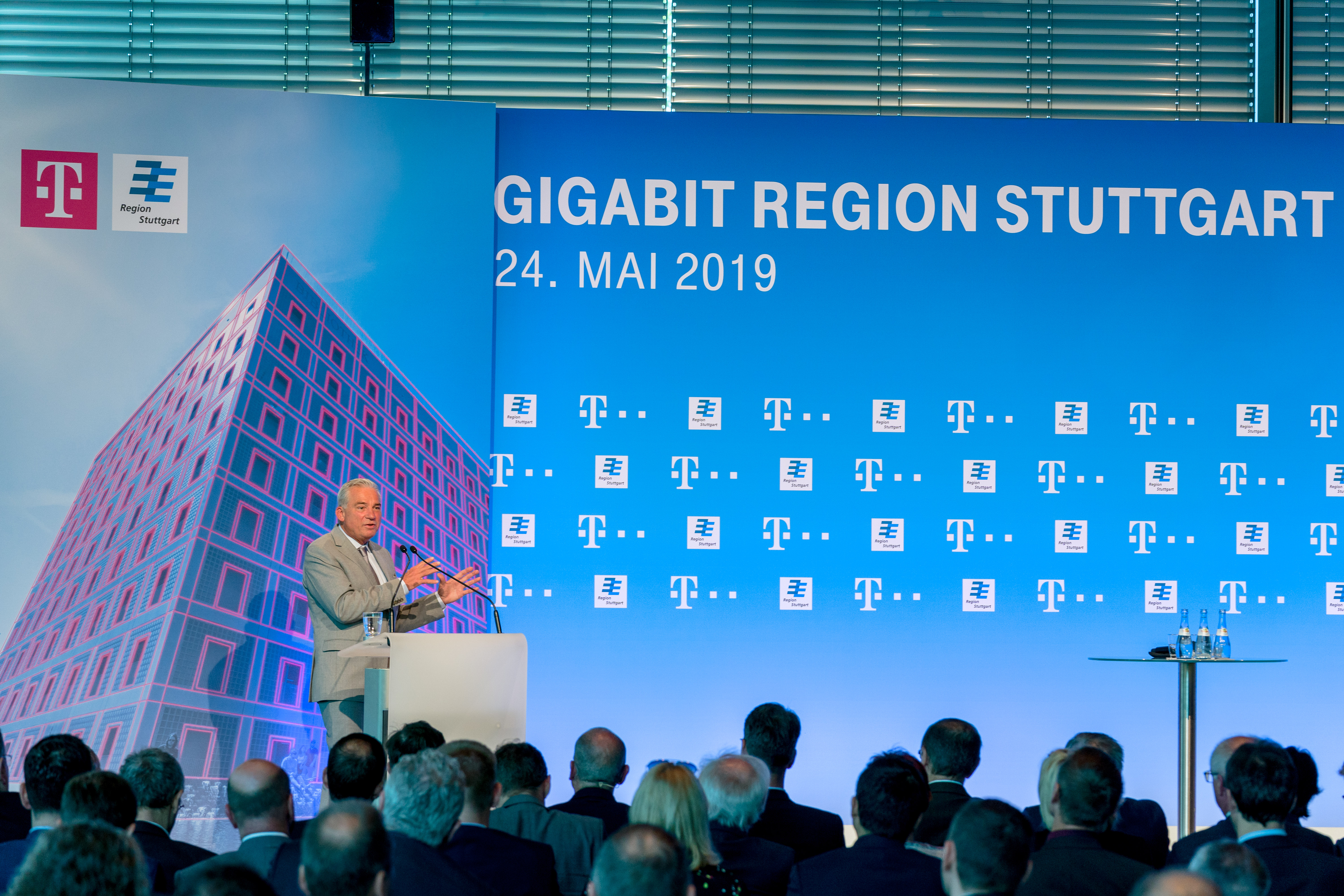 Gigabitregion Stuttgart GmbH und Deutsche Telekom unterzeichneten am 24. Mai 2019 in Fellbach einen Kooperationsvertrag zum Glasfaserausbau in 174 Kommunen. Digitalisierungsminister Thomas Strobl lobte das Projekt in seiner Rede als gutes Beispiel für gelungene Zusammenarbeit und besuchte anschließend die zugehörige Messe.