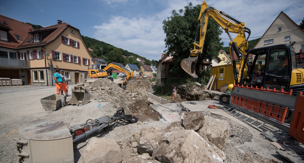 Bereits 35 Millionen Euro Aufbauhilfe hat die Landesregierung für die Gemeinde Braunsbach ausgezahlt oder bewilligt. Vor zwei Jahren hat ein Hochwasser nach einem Starkregen die Ortskern von Braunsbach mit zahlreichen Häusern schwer beschädigt.