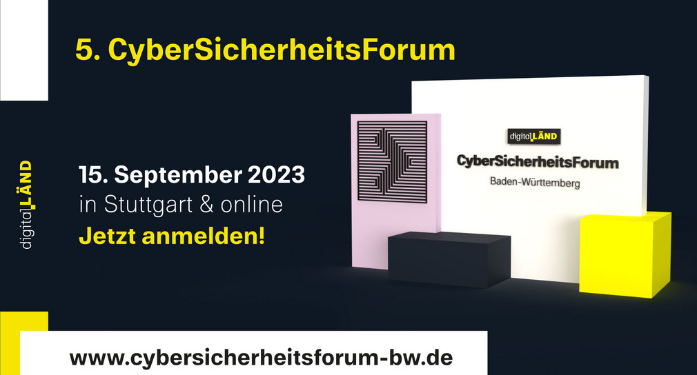 Am 15. September 2023 findet in Stuttgart und online das fünfte CyberSicherheitsForum statt. Seien Sie dabei und melden Sie sich jetzt an!