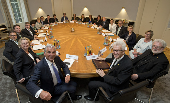 In der Villa Reitzenstein händigte Kretschmann schließlich den Mitgliedern der Landesregierung und den politischen Staatssekretären die Ernennungsurkunden aus. Nach dem traditionellen Kabinettsfoto folgte die erste Kabinettssitzung der neuen Regierung.