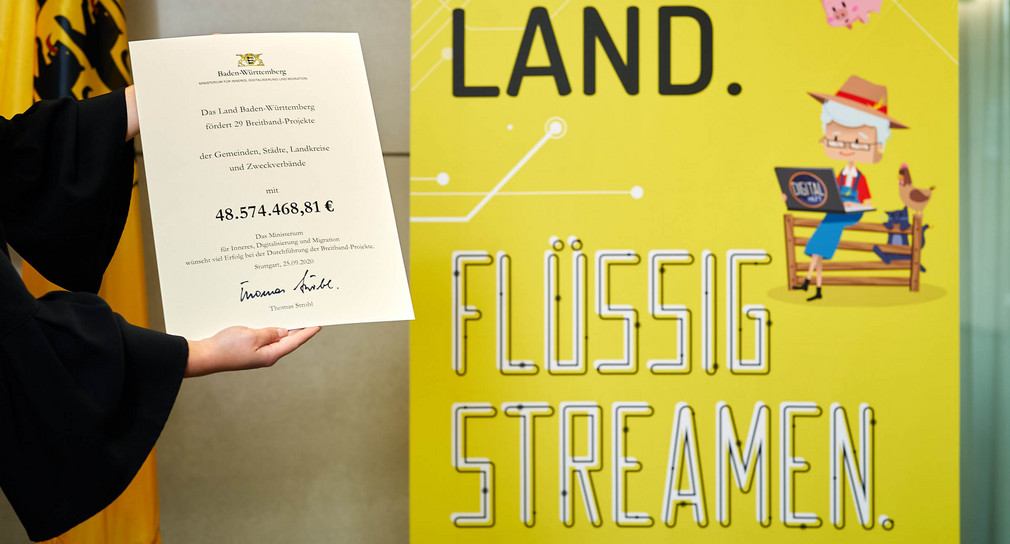 „Die Digitalisierung bringt tiefgehende Veränderungen in allen Lebensbereichen mit sich und die weltweite Corona-Pandemie hat diese Entwicklung weiter beschleunigt. Digital hilft uns in unserem neuen Alltag mit dem Corona-Virus sowohl in der Freizeit als auch bei der Arbeit. Damit wir die Möglichkeiten der Digitalisierung voll ausschöpfen können, braucht es eine leistungsfähige digitale Infrastruktur. Das wissen wir als Landesregierung nicht erst seit der Pandemie. Deshalb investieren wir eine Rekordsumme, mehr als eine Milliarde Euro, in den Breitbandausbau. Jeder Euro, den wir dafür ausgeben, ist eine Investition in die Zukunftsfähigkeit und Wettbewerbsfähigkeit unserer Wirtschaft sowie unserer Städte und Gemeinden“, sagte der Stellvertretende Ministerpräsident und Digitalisierungsminister Thomas Strobl anlässlich der Übergabe von Breitbandförderbescheiden.