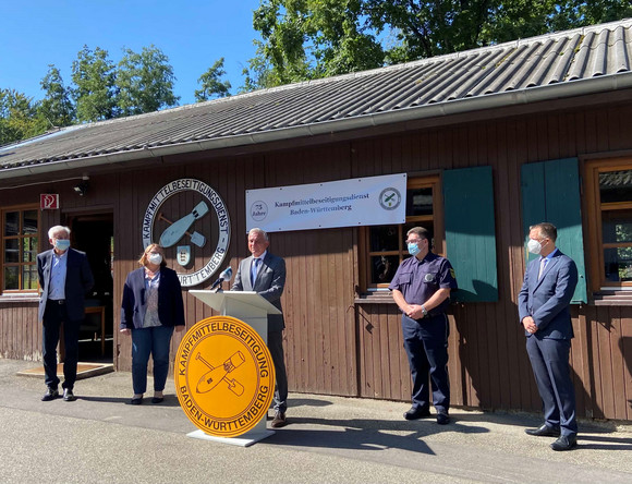 Innenminister Thomas Strobl unterstrich die anhaltende Bedeutung der Kampfmittelbeseitiger „gestern - heute - morgen“: „Im Jahr gehen bis zu 1.000 Meldungen über Munitionsfunde beim Kampfmittelbeseitigungsdienst ein. Granaten, Minen und Bomben werden beim Baustellenaushub, bei der Feldbestellung, bei Waldarbeiten oder von Spaziergängern und Pilzsammlern im Wald entdeckt.“
