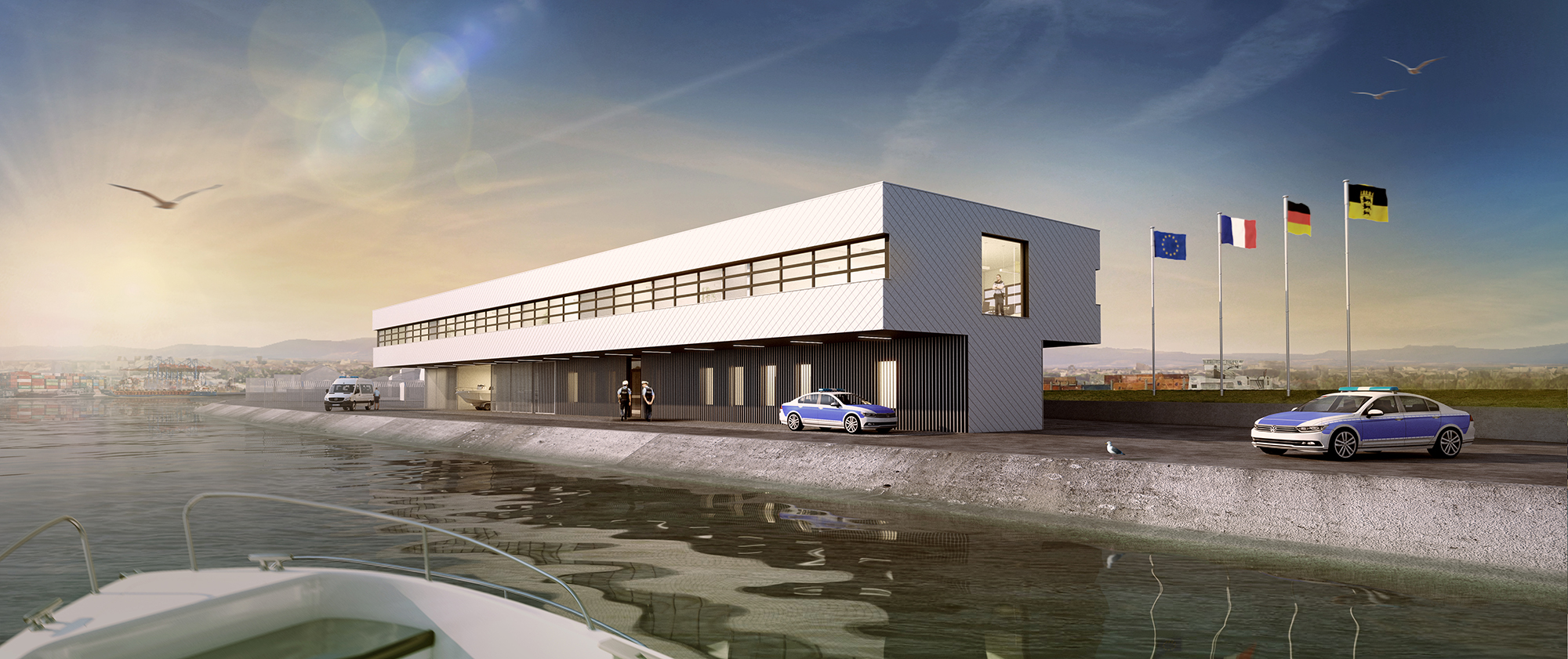 Frankreich und Deutschland haben seit dem Jahr 2012 eine gemeinsame Wasserschutzpolizeistation am Oberrhein. Diese kontrolliert den Schiffsverkehr und fahndet auf dem Wasser. Die Einheit ist bisher interimsweise in der Hafenstraße in Kehl untergebracht. Entsprechend dem Ergebnis einer Wirtschaftlichkeitsuntersuchung wird der Neubau am künftigen Standort in der Weststraße errichtet. Vorher stand hier das Gebäude der Wasserstraßen- und Schifffahrtsverwaltung. Die französische Gendarmerie de Region d´Alsace erhält ebenfalls Platz in den neuen Räumen.