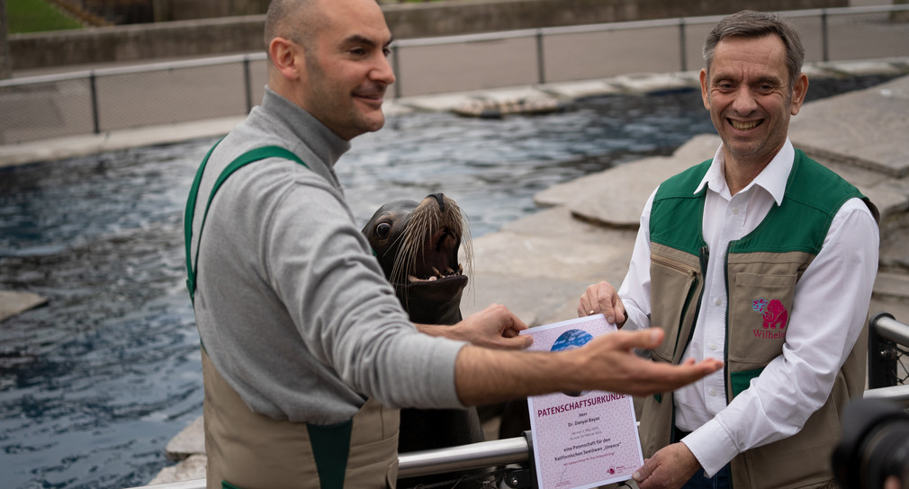 Finanzminister Dr. Danyal Bayaz hat in der Wilhelma die Patenschaft für den Seelöwen-Bullen „Unesco“ übernommen. Patenschaften sind für die Arbeit der Wilhelma sehr wichtig.