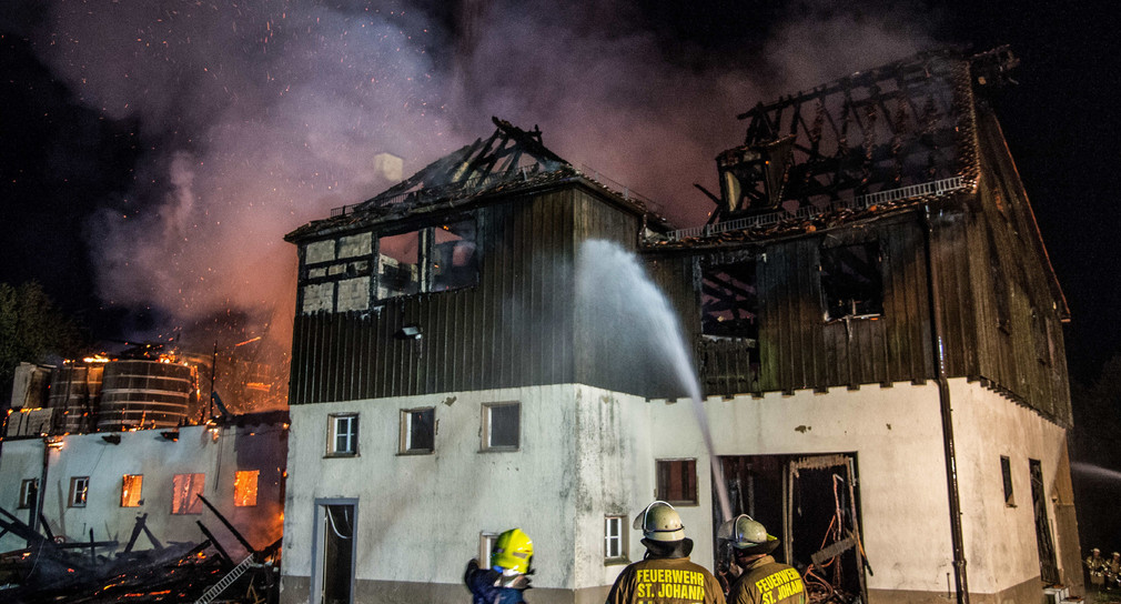 Vom Brand betroffen ist ein historisches Gebäude, in der das Gestüt Getreide lagert.
