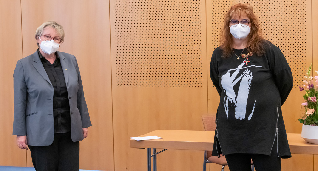 Wissenschaftsministerin Theresia Bauer hat Annette Hans das Bundesverdienstkreuz überreicht und ihren Einsatz für Lungenkrebspatienten und Prävention gewürdigt.