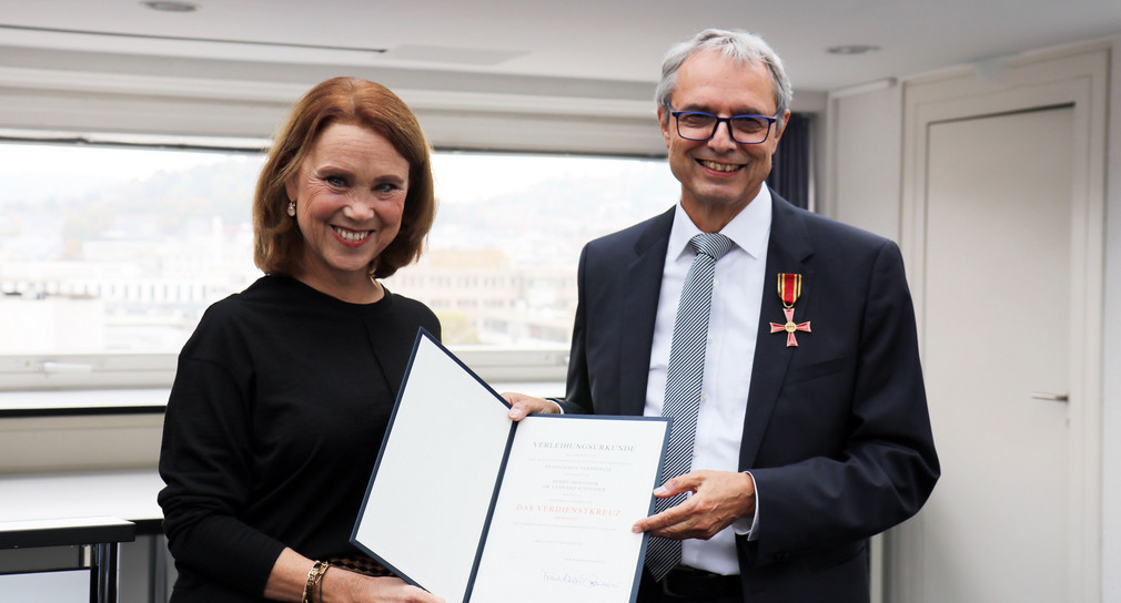 Professor Schneider hat den Wissenschafts- und Wirtschaftsstandort Ostwürttemberg maßgeblich vorangebracht. Als Rektor der Hochschule Aalen engagierte er sich in regionalen wie überregionalen Gremien – insbesondere im Vorstand der baden-württembergischen Rektorenkonferenz der Hochschulen für angewandte Wissenschaften (HAWen). Für seinen Einsatz hat Schneider nun das Verdienstkreuz am Bande des Verdienstordens der Bundesrepublik Deutschland erhalten. Wissenschaftsministerin Petra Olschowski hat den Materialwissenschaftler am 14. Oktober 2024 in Stuttgart ausgezeichnet.