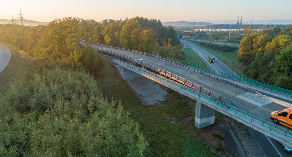 Brücken stellen im Verkehrsnetz oftmals die Achillesverse dar, weshalb die Erhaltung dieser Bauwerke und die Aufrechterhaltung der Verkehrsfunktion von Brücken von besonderer Bedeutung ist. Insbesondere die über die volle Fahrbahnbreite in Querrichtung eingebauten Fahrbahnübergänge, die die Längenänderungen einer Brücke ausgleichen und insoweit das Bindeglied zwischen Brücke und Strecke darstellen, unterliegen einem erhöhten Verschleiß und müssen daher regelmäßig gewartet und alle paar Jahre ausgetauscht werden. Solche Arbeiten sind bislang mit erheblichen Verkehrsbeeinträchtigungen verbunden, da sie üblicherweise unter Vollsperrung oder zumindest teilweisem Fahrspureinzug durchgeführt werden müssen. Abhilfe kann die „Fly-Over-Rampe“ schaffen. „Wir bauen hier eine Behelfsbrücke auf die eigentliche Brücke und lassen den Verkehr mit der vollen Anzahl an Fahrspuren, lediglich mit etwas verringerter Geschwindigkeit über die Baustelle hinweg rollen“, erklärte Hermann zu der Konstruktion.