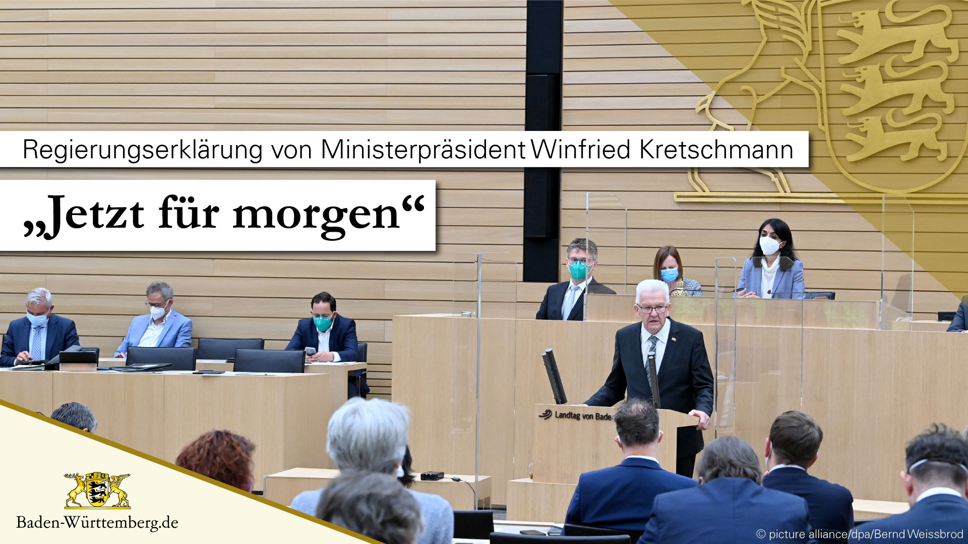 Der Koalitionsvertrag ist mit „Jetzt für morgen“ überschrieben. Dies bedeute, die Verantwortung aktiv zu suchen und beherzt zu gestalten, sagte Kretschmann abschließend. „Das ist es, was wir tun werden. Für den Schutz des Klimas, für eine neue wirtschaftliche Stärke, für echten Zusammenhalt. Jetzt für eine gute Zukunft – für uns, und für unsere Kinder und Enkel.“