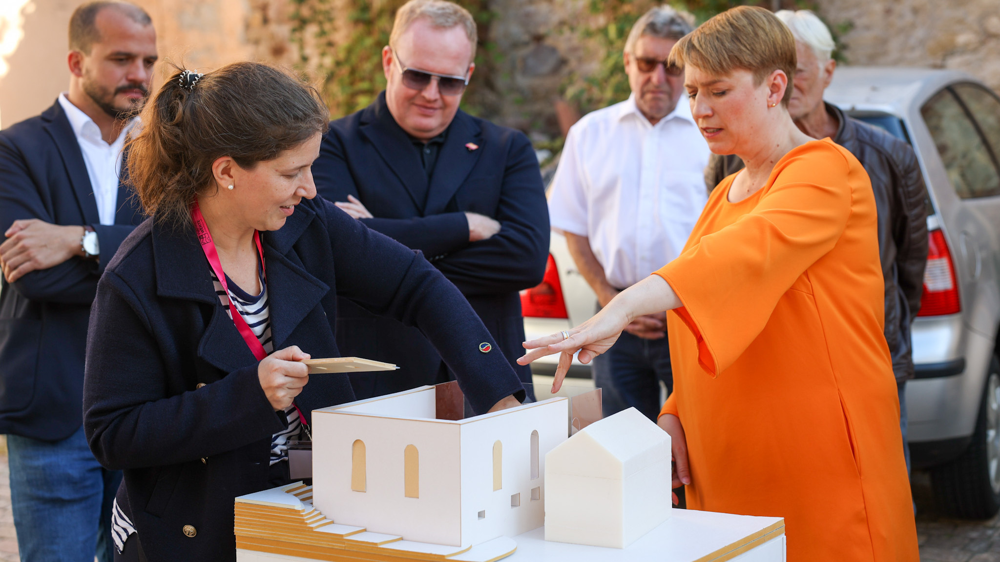 Die Tour des dritten Reisetages führte Staatssekretärin Lindlohr zur ehemaligen Synagoge in Neidenstein. Im Stil der Weinbrenner Schule 1830 als eine der größten und prächtigsten Landsynagogen Badens errichtet, verfiel das einstige religiöse Zentrum nach der Reichspogromnacht und der Umnutzung zur landwirtschaftlichen Scheune zusehends. Dank des Engagements des Vereins Fördergemeinschaft Ehemalige Synagoge Neidenstein e.V. wurden in den vergangenen Jahren zahlreiche Veranstaltungen zur Erinnerung an das jüdische Erbe initiiert. Die Auseinandersetzung und die Aufarbeitung der ländlichen jüdischen Geschichte in und um Neidenstein vermittelt das Interesse am Erhalt der Synagoge. „Das geplante Kulturzentrum erinnert an das jahrhundertelange gemeinschaftliche Miteinander von Christen und Juden. Als Begegnungsstätte trägt die ehemalige Synagoge zur Toleranz in der heutigen Gesellschaft bei“, sagte Lindlohr.