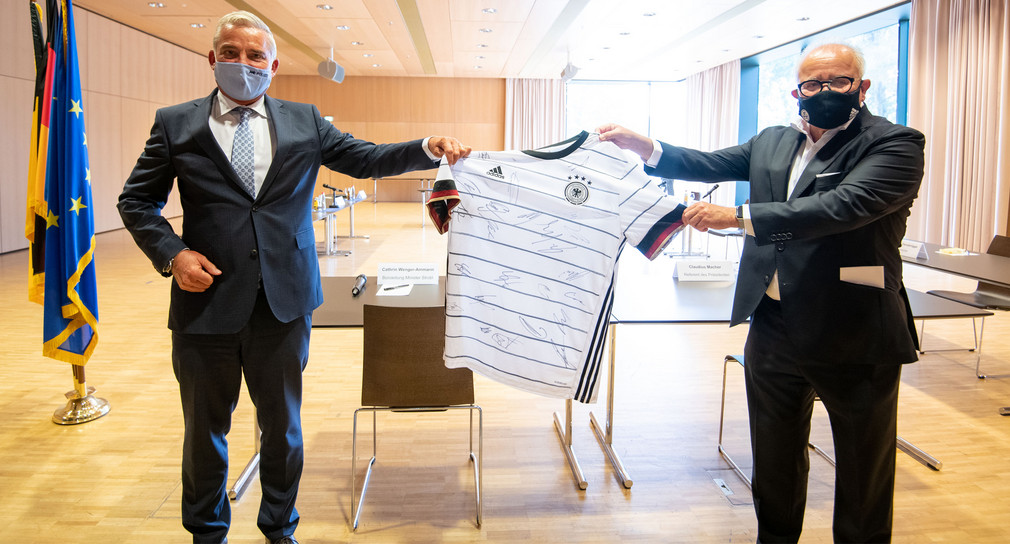 DFB-Präsident Fritz Keller und Innenminister Thomas Strobl haben am gestrigen Donnerstag im Vorfeld des Fußball-Länderspiels Deutschland gegen Spanien in Stuttgart über den Alltag und Umgang mit dem Coronavirus im Fußball gesprochen.