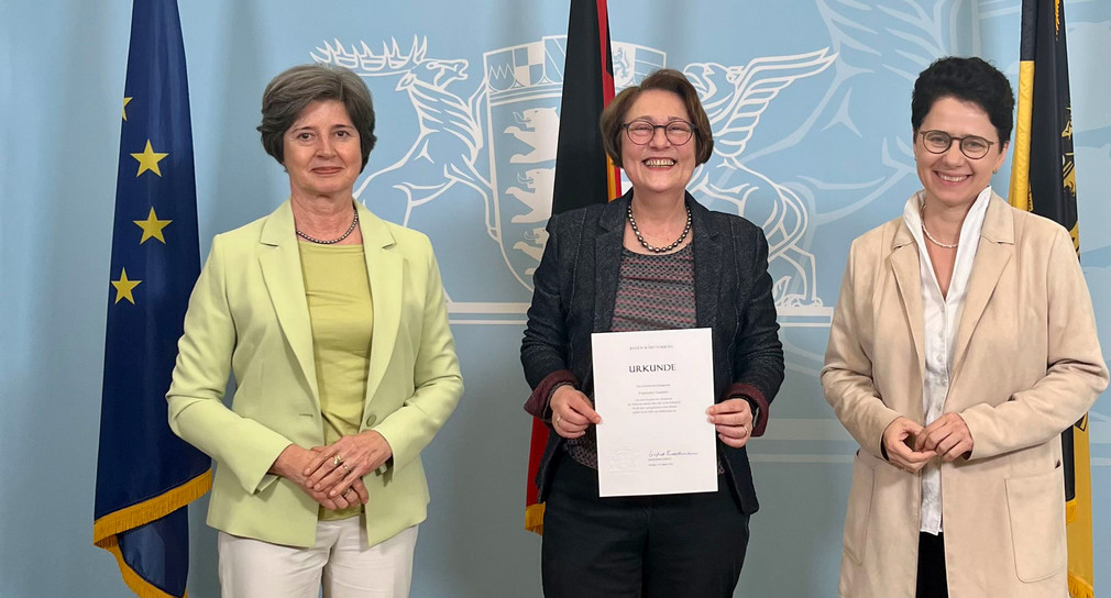 Justizministerin Marion Gentges hat der ehemaligen Direktorin des Sozialgerichts Konstanz, Franziska Hammer, im Rahmen einer Feierstunde ihre Ruhestandsurkunde überreicht.