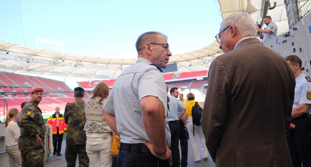 Die Polizei Baden-Württemberg bereitet sich seit Monaten intensiv auf die bevorstehenden Veranstaltungen und Einsatzlagen vor. Innenminister Thomas Strobl verschaffte sich bei einer Übung der Einsatz- und Rettungskräfte in der MHP-Arena in Stuttgart einen Eindruck vom Stand der Vorbereitungen.