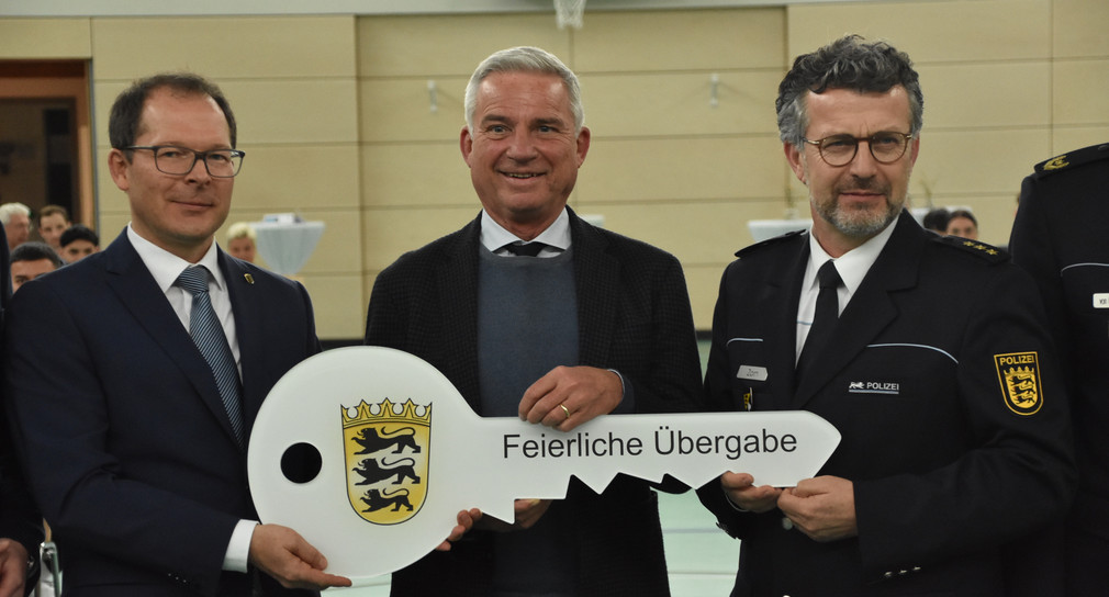 „In der Vergangenheit habe ich mich stets klar zum Polizeistandort Wertheim bekannt. Dieses Bekenntnis haben wir verlässlich umgesetzt. Wir halten Wort. Die Sporthalle steht für eine Zusage des Landes an die Stadt und an die Region, eine Zusage auf meine Initiative hin. Seit vielen Jahren ist Wertheim einer der Standorte für die Ausbildung der Polizei Baden-Württemberg und wird es mit dem Aufbau des Areals – nicht nur dieser Sporthalle – auch langjährig bleiben. Wertheim war, ist und bleibt auch künftig ein wichtiger Teil der größten Einstellungsoffensive, die es je bei der Polizei Baden-Württemberg gegeben hat. Seit dem Jahr 2016 haben aufgrund der Einstellungsoffensive über 10.000 junge Menschen ihre Ausbildung bei der Polizei Baden-Württemberg begonnen. Seit dem vergangenen Jahr übersteigen die jährlichen Personalzugänge durch fertig ausgebildete Polizeivollzugsbeamtinnen und Polizeivollzugsbeamte landesweit wieder die Personalabgänge – das bedeutet am Ende des Tages: mehr Polizei auf der Straße“, betonte Innenminister Thomas Strobl.