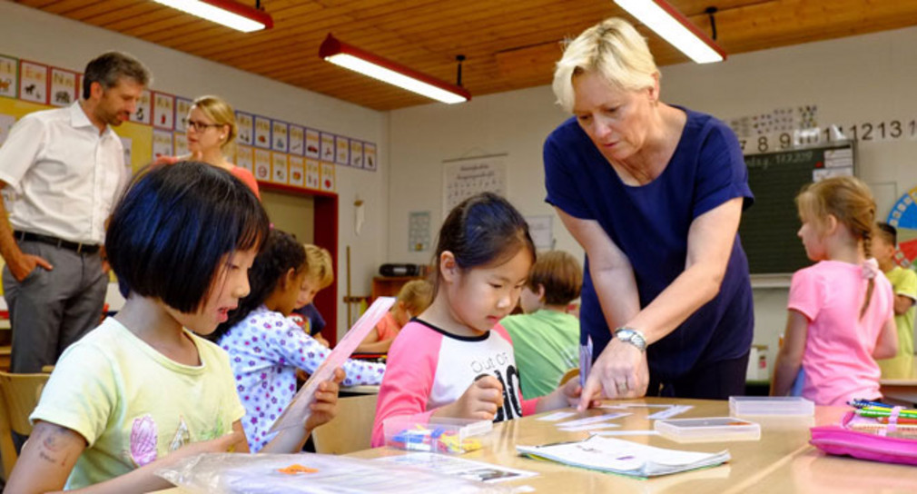 Eisenmann besucht eine kooperative Lerngruppe der Jahrgangsstufe vier und eine erste Klasse zum Thema integrative Sprachförderung für Kinder nichtdeutscher Herkunftssprache. Im Anschluss führt die Ministerin ein Gespräch mit der Schulleitung und Lehrkräften des Kollegiums über aktuellen Aufgaben im Bereich der Inklusion, der Qualitätsentwicklung an Grundschulen und der Integration von Zugewanderten.