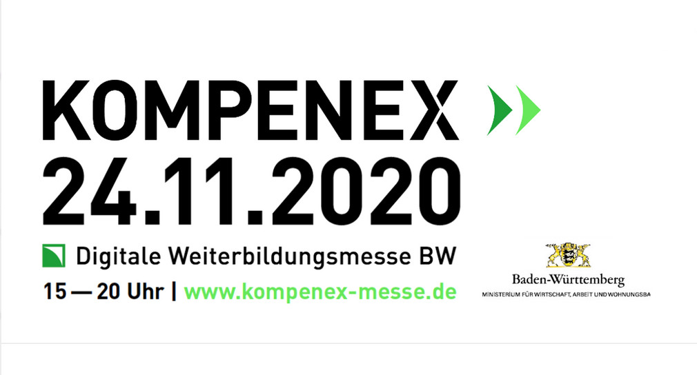 Das Wirtschaftsministerium veranstaltet am 24. November 2020 die erste landesweite digitale Weiterbildungsmesse KOMPENEX. Interessierte finden auf der Webseite ein vielfältiges Angebot zur beruflichen Weiterbildung in Baden-Württemberg.