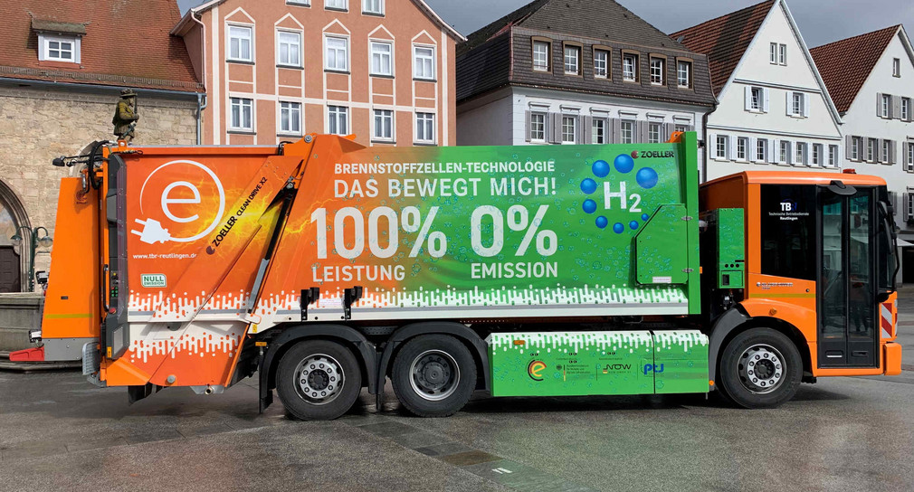 Das Müllfahrzeug mit Brennstoffzelle ermöglicht es, Abfälle klimaneutral zu sammeln. Speziell von der Firma Zoeller für den Einsatz in der Entsorgungswirtschaft entwickelt und gebaut von der Firma Faun, dem derzeit einzigen Hersteller von Brennstoffzellen-Müllfahrzeugen. Beim Brennstoffzellen-Müllsammelfahrzeug wird ein vollelektrisches Fahrgestell mit der sicheren Wasserstoff-Brennstoffzellen-Technik kombiniert. Durch diese Kombination werden die Einsatzzeiten und Reichweiten von Fahrzeugen mit konventioneller Antriebstechnik erreicht. Die Reichweite des Brennstoffzellen-Müllsammelfahrzeugs der Stadt Reutlingen liegt nach Herstellerangaben innerstädtisch bei rund 370 Kilometern. In Reutlingen wird die Batterie für den Antrieb des Fahrzeugs mit 100 Prozent Öko-Strom aufgeladen. Die nächste Wasserstofftankstelle liegt im benachbarten Metzingen.