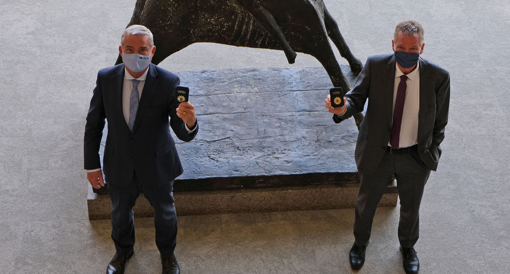 Die Kriminalpolizei in Baden-Württemberg erhält ein neues Etui für den Dienstausweis. Es soll die Erkennbarkeit und damit Sicherheit der Beamtinnen und Beamten der Kriminalpolizei erhöhen. Innenminister Thomas Strobl hat das erste Exemplar symbolisch übergeben.