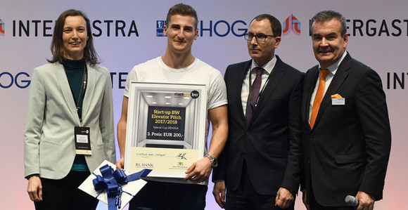 Der Gründerwettbewerb Start-up BW Elevator Pitch sucht derzeit wieder in ganz Baden-Württemberg nach einfallsreichen Geschäftsideen und den besten Gründerinnen und Gründern im Land. Am 6. Februar 2018 fand der „Start-up BW Elevator Pitch – Special Cup DEHOGA“ im Rahmen der INTERGASTRA 2018 auf der Messe Stuttgart statt.