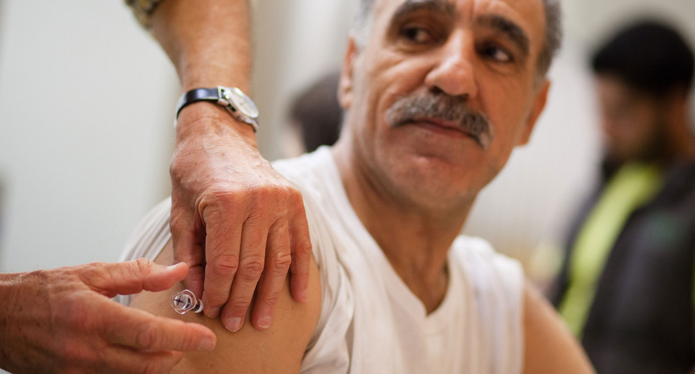 Ein Mann bekommt eine Impfung in den Oberarm.