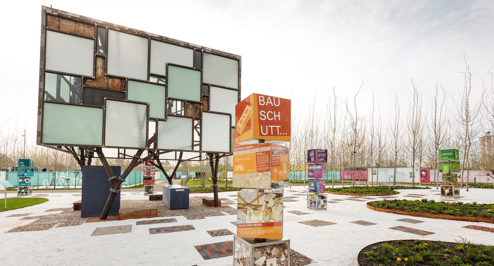 Beim Bauen fällt viel Abfall an. Im Rahmen einer Veranstaltung auf der Bundesgartenschau in Heilbronn wird im komplett aus Recyclingmaterialien erbauten Mehr.WERT.Garten über ressourcenschonendes und nachhaltiges Bauen diskutiert.