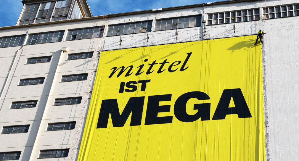Seit Mitte April taucht der aufmerksamkeitsstarke Slogan „mittel IST MEGA“ auf riesigen Plakaten und Beamer-Projektionen an prominenten Orten im ganzen Land auf. Diverse Medien haben bereits darüber berichtet, in sozialen Netzwerken wurde spekuliert: Was steckt hinter dieser Botschaft? Heute ist klar: Es ist eine Einladung, den Mittelstand neu zu sehen.