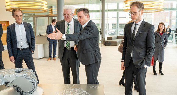 Bei einem Besuch des Werks Stuttgart-Feuerbach der Robert Bosch GmbH konnte sich Ministerpräsident Winfried Kretschmann ein Bild von der aktuellen Situation bei Bosch machen. Er zeigte sich beeindruckt, wie zielgerichtet Bosch neue Wachstumsfelder und Zukunftstechnologien vorantreibt. Auch die Weiterqualifizierung von Beschäftigten packe Bosch entschlossen an, befand der Ministerpräsident.