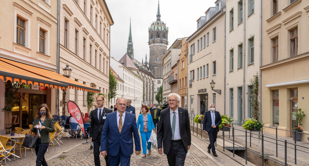 „Ich freue mich wirklich sehr, dass meine erste richtige Reise ,seit Corona‘ auch nach Sachsen-Anhalt führte. In ein Land mit so viel Kultur, so viel Geschichte, so viel Schönheit! Luther, die Reformation, das Bauhaus: von Sachsen-Anhalt gingen für Deutschland prägende und weltweit ausstrahlende Bewegungen aus – wenn auch in ganz unterschiedlichen Bereichen. Gerade in Wittenberg liegen welthistorisch bedeutenden Stätten sehr dicht beieinander“, betonte Ministerpräsident Kretschmann zu Beginn seiner Reise.