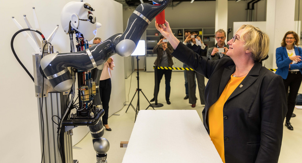 Welche Möglichkeiten bietet Künstliche Intelligenz für die Gesellschaft? Vorgestellt wurden im Robotik-Labor intelligente Kontrollsysteme, die sich eigenständig in der physikalischen Welt zurechtfinden können. Roboter Apollo ist solch ein intelligentes System, der seine Umgebung wahrnimmt, entsprechend handelt und aus Erfahrungen lernt.