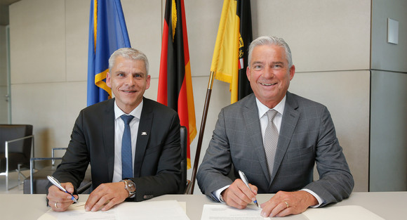 Innenminister Thomas Strobl und Dr. Patrick Rapp, Präsident des Bundes Deutscher Blasmusikverbände e.V. haben einen Kooperationsvertrag unterzeichnet. Ziel ist die intensive Zusammenarbeit, Vernetzung und nachhaltige Ausbildung von Musikerinnen und Musikern.