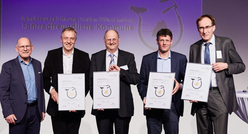 Erfolgreich rezertifiziert wurden die Städte Karlsruhe, Freiburg und Offenburg, denen eine sehr gute Weiterentwicklung im Radverkehr bescheinigt werden kann. Erstmals waren die Städte 2011 ausgezeichnet worden. In diesen vorbildlichen Städten werden zwischen 25 und 34 Prozent der Wege per Rad zurückgelegt – jeweils mit weiter steigender Tendenz. In der neu ausgezeichneten Stadt Mannheim nutzen die Menschen inzwischen bei 18 Prozent aller Wege das Rad.