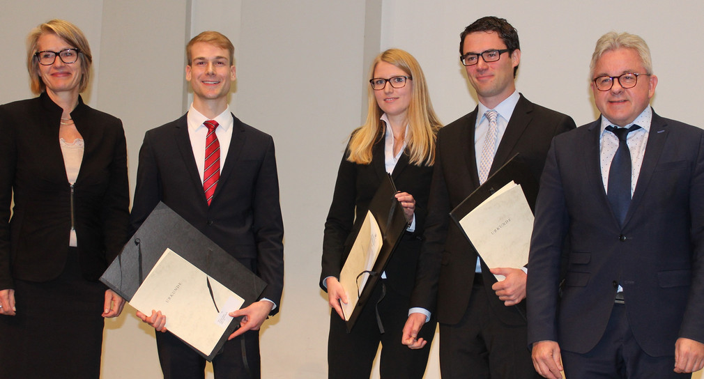 Wolf gratulierte gemeinsam mit der Präsidentin des Landesjustizprüfungsamts, Christine Jacobi, allen frisch gebackenen Rechtsassessorinnen und Rechtsassessoren persönlich zum Examen. Die drei besten Absolventinnen und Absolventen des Jahrgangs zeichnete er besonders aus. Das beste Examensergebnis erzielte Christian Gebert (Ulm) mit der herausragenden Gesamtnote von 13,68 Punkten. Ebenfalls selten und herausragend die Ergebnisse der zweitbesten Absolventin Nadine Bösner, Ravensburg (12,97 Punkte), und des drittbesten Assessors, Peter Lechner, Karlsruhe (12,49 Punkte).