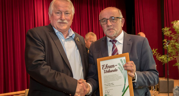 Abschließend verlieh Landwirtschaftsminister Peter Hauk an Joachim Hauck die Gerhard Weiser-Medaille. Diese Auszeichnung wurde bisher erst sechs Mal vergeben. Es ist eine Auszeichnung, die nur für ganz besondere Verdienste um den Ländlichen Raum, die Land-, Forst- und Ernährungswirtschaft sowie den Natur- und Tierschutz in Baden-Württemberg verliehen wird. „Sie haben sich bleibende Verdienste für die Landwirtschaft in Baden-Württemberg erworben, dafür haben Sie den Dank und die Anerkennung der Landesregierung und der Landwirtschaft in Baden-Württemberg verdient“, so Minister Hauk.